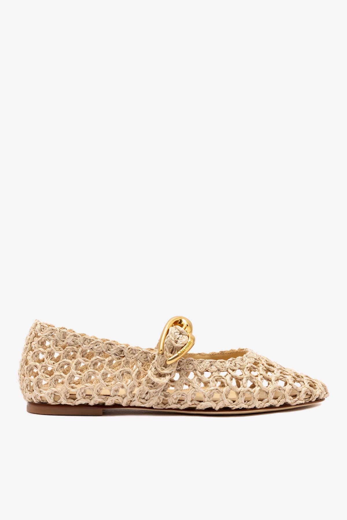 Our most comfortable flat yet, our newest Verona mary-jane takes cues from a Shakespearean romance. In chunky woven raffia macrame—and a sweet new heart buckle at the ankle strap—this neutral pair is a breath of fresh air this Spring and Summer.