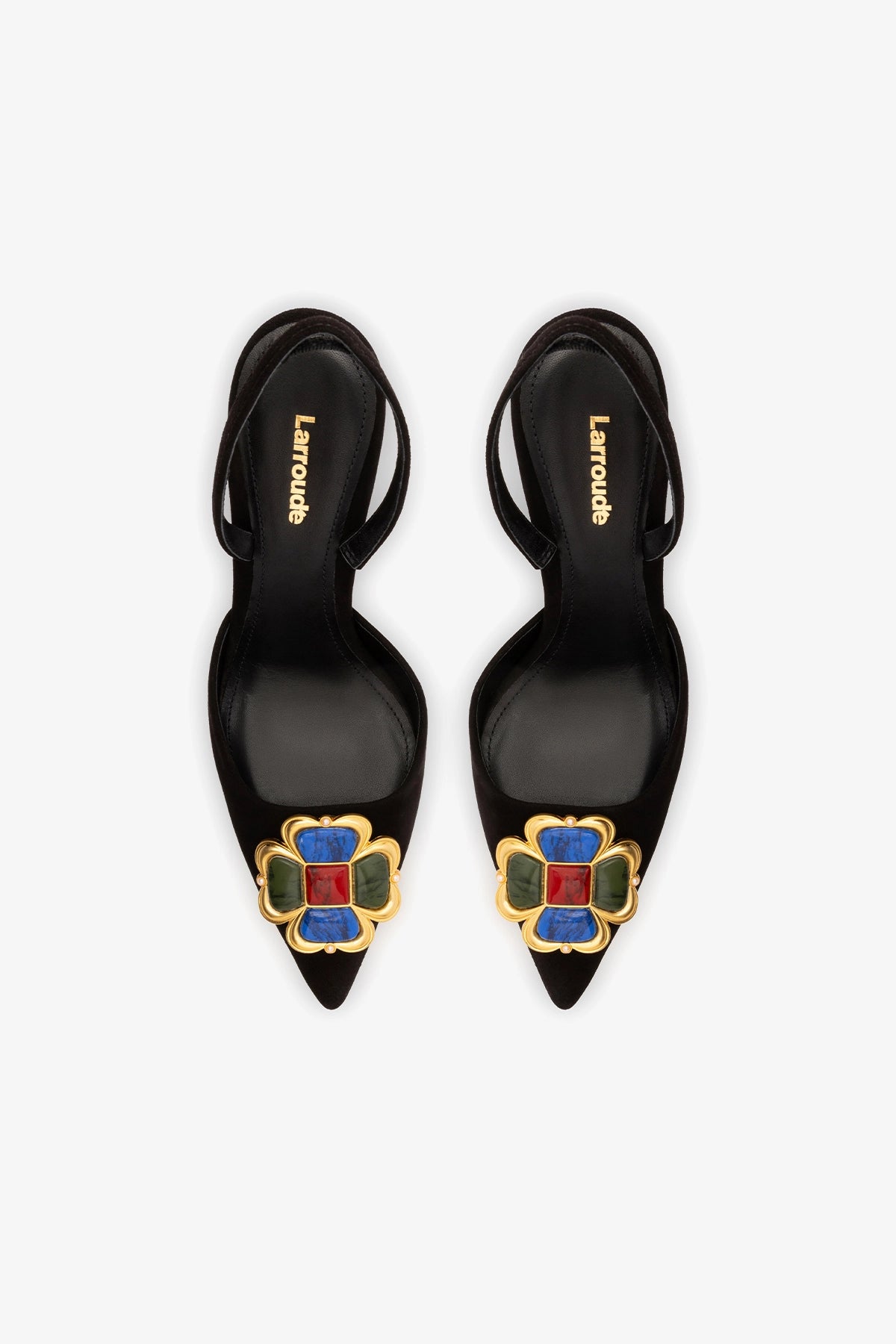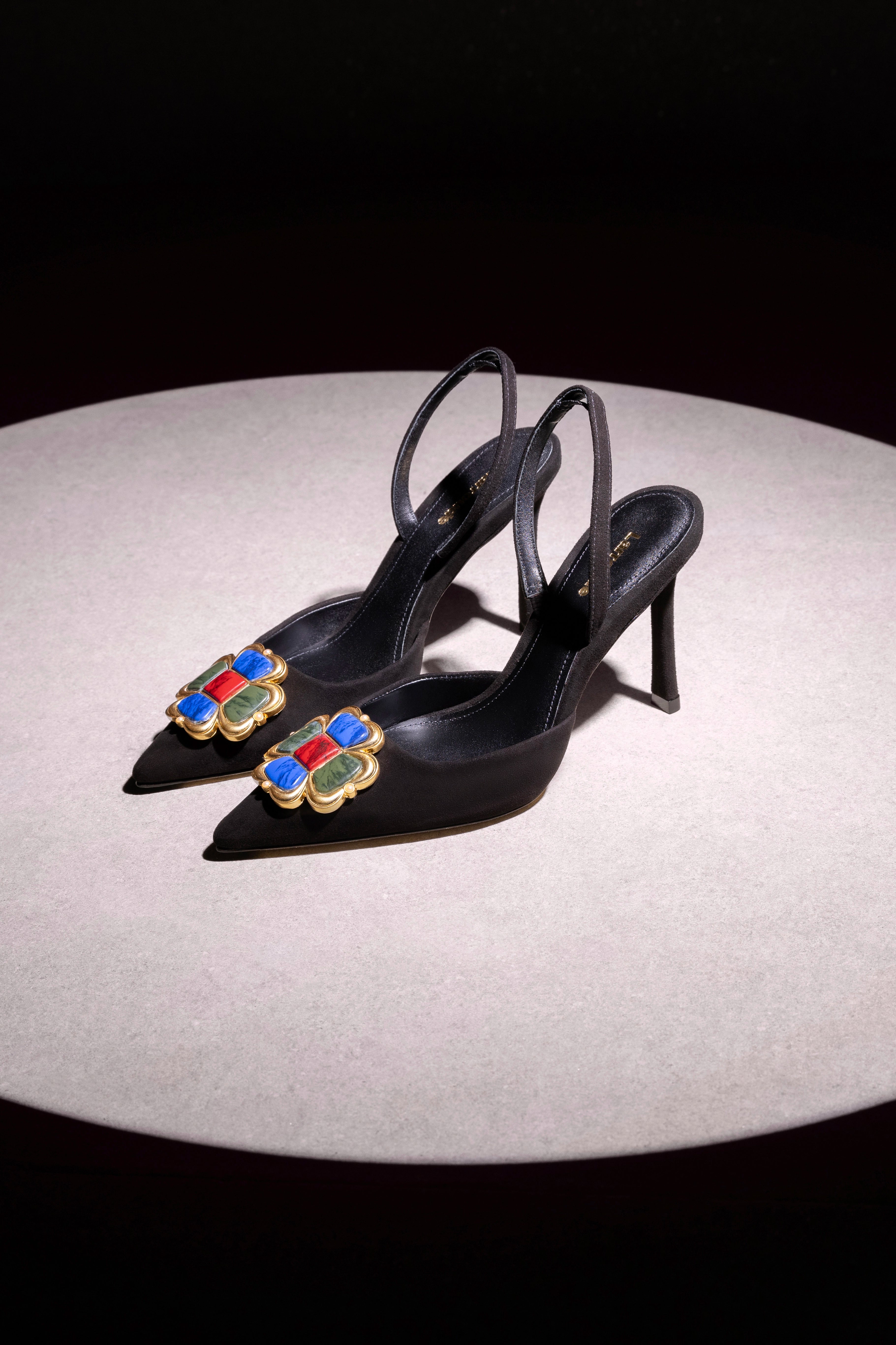 Meet the Chrissy, our newest pump inspired by the exuberant 80s couture of Christian Lacroix—think rich textures, bold details, and unapologetic glamour. Crafted in soft Lancaster and finished with a sculptural ornament, it’s made to steal the spotlight (and maybe a few hearts along the way).