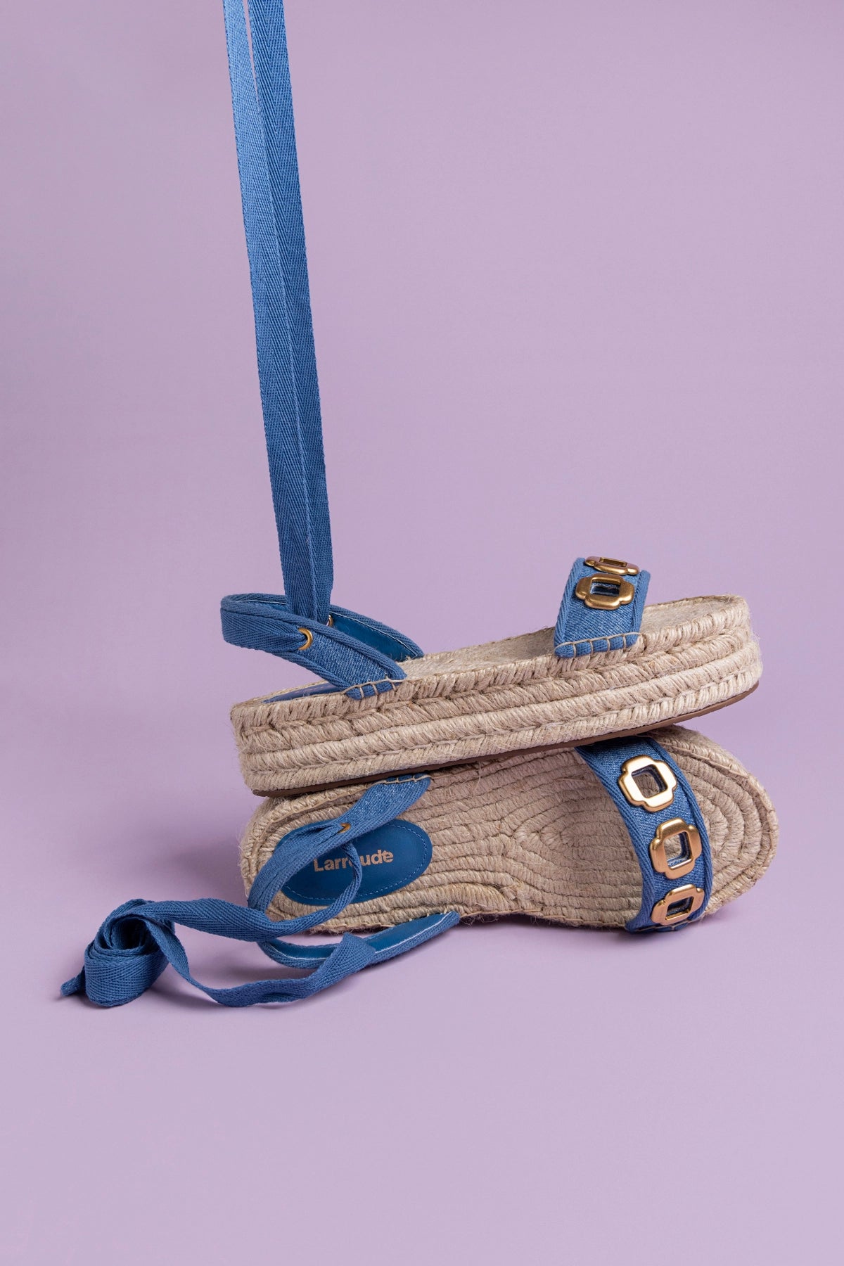 The newest member of the family, the Milan Espadrille Flatform is on our High Summer packing list. With the same motifs that have made the Milan a best seller, along with a super comfortable and of-the-moment flatform base, this denim sandal features a leather upper with our signature hardware, ribbon straps that wrap all the way around the ankle, and a rubber sole for maximum durability.