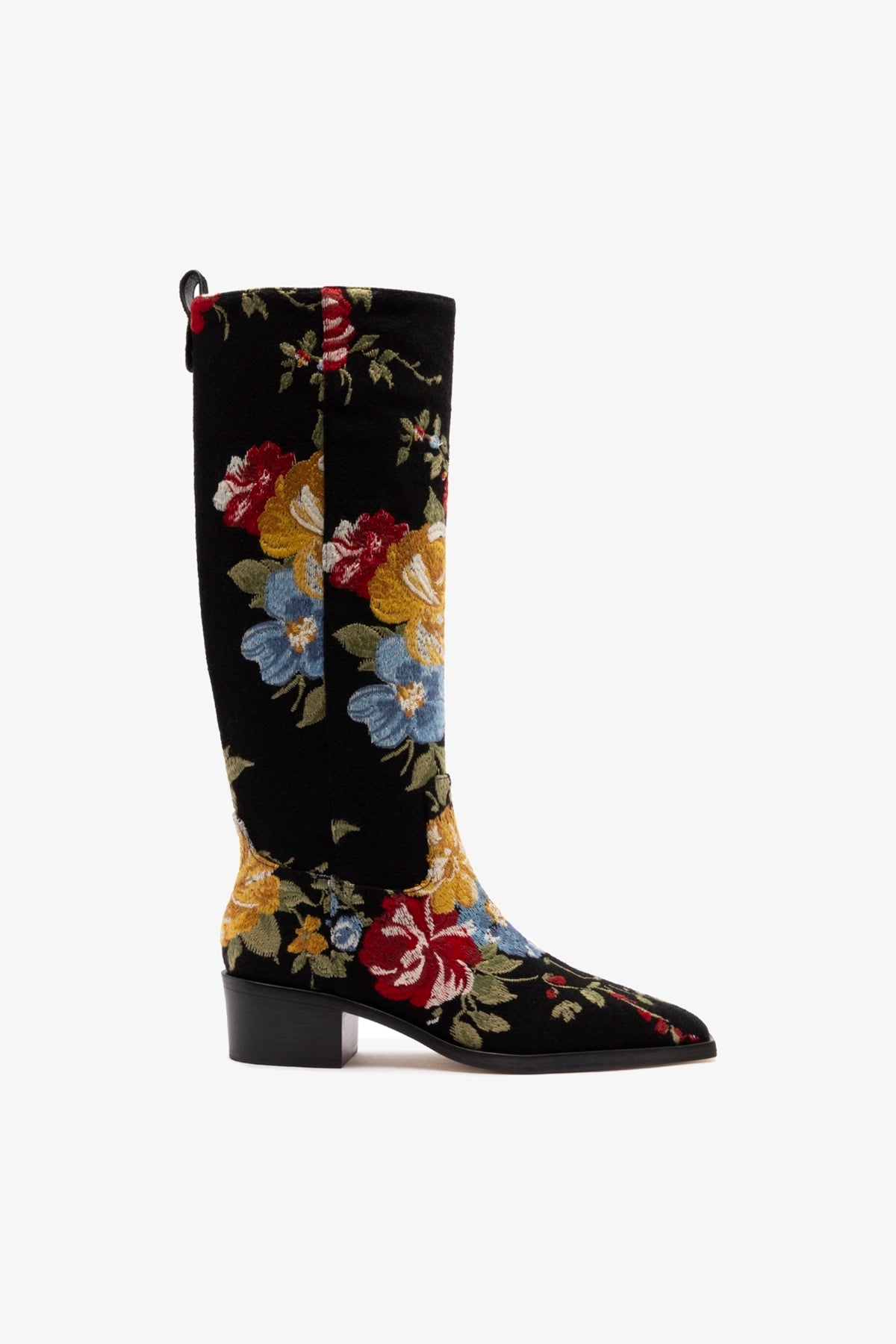 Larroudé x Markarian Florencia Boot In Floral Embroidery Black Fabric