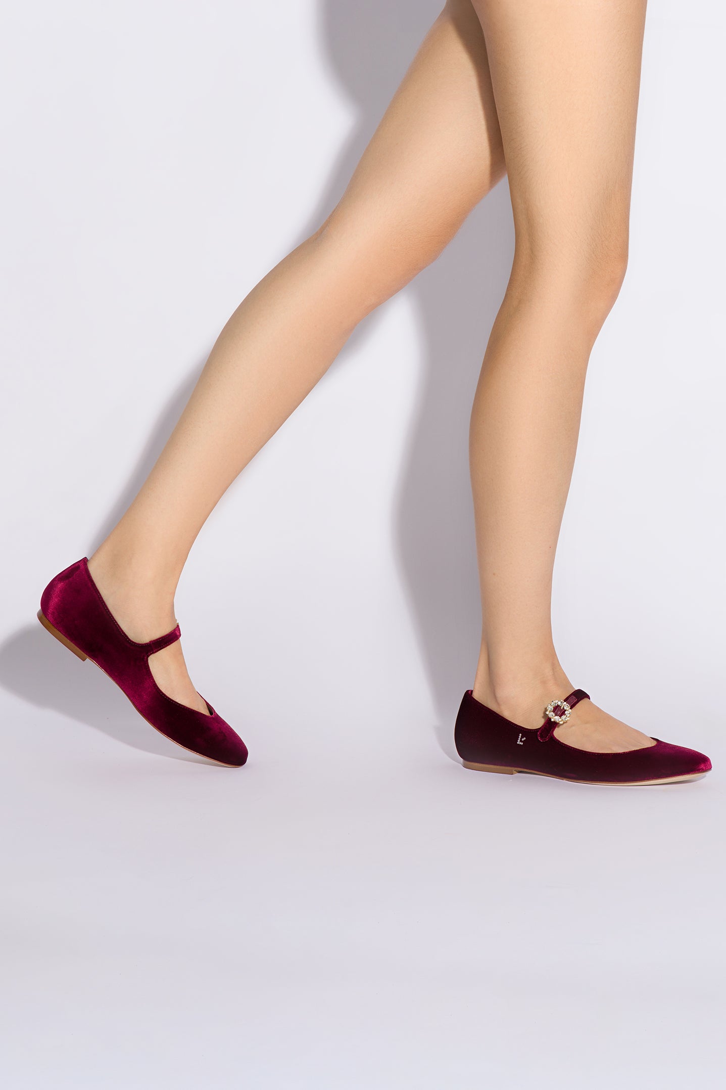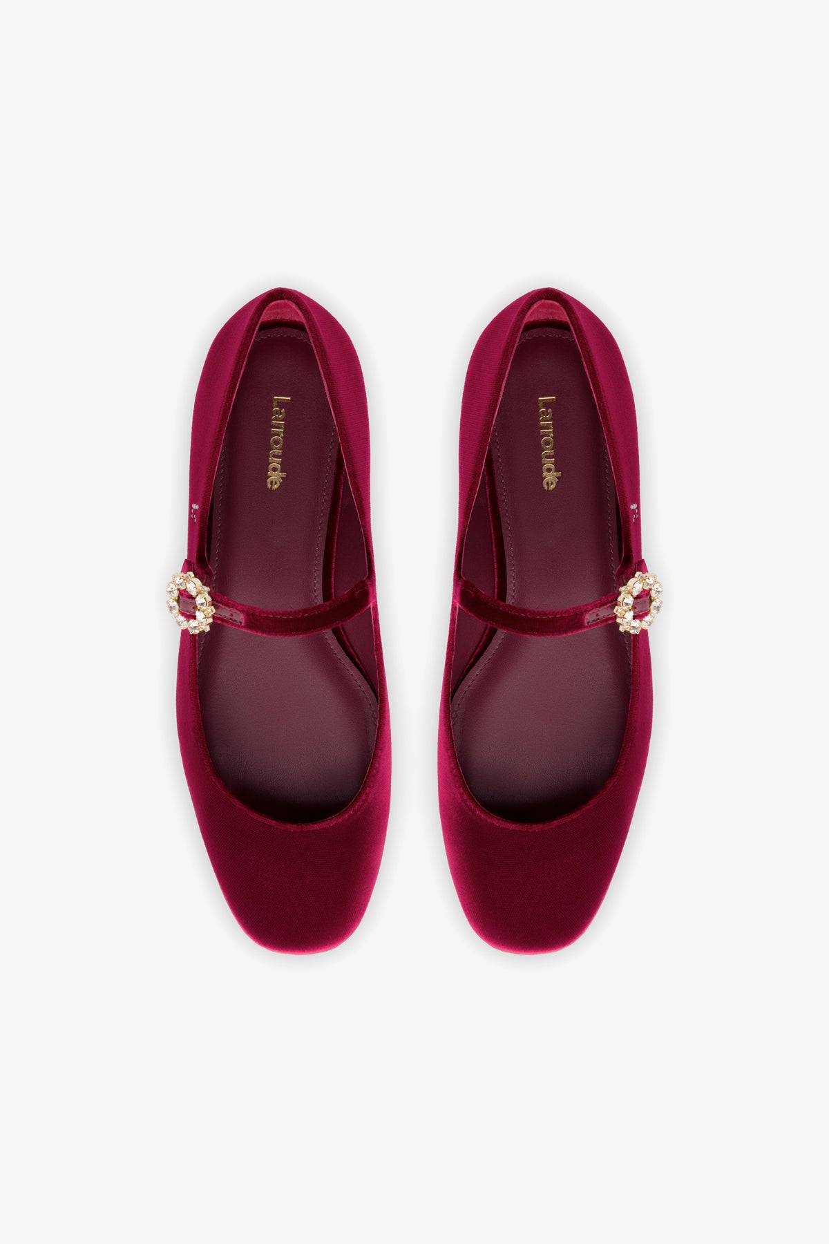 An adorable mary jane with modern details that keep it fresh—the one that's quickly become a cult classic. We've added this chic new flat with a sleek base and adjustable ankle fastening in a rich wine colored velvet that's our fave pick to go with all our jeans, and everything else, all year long.