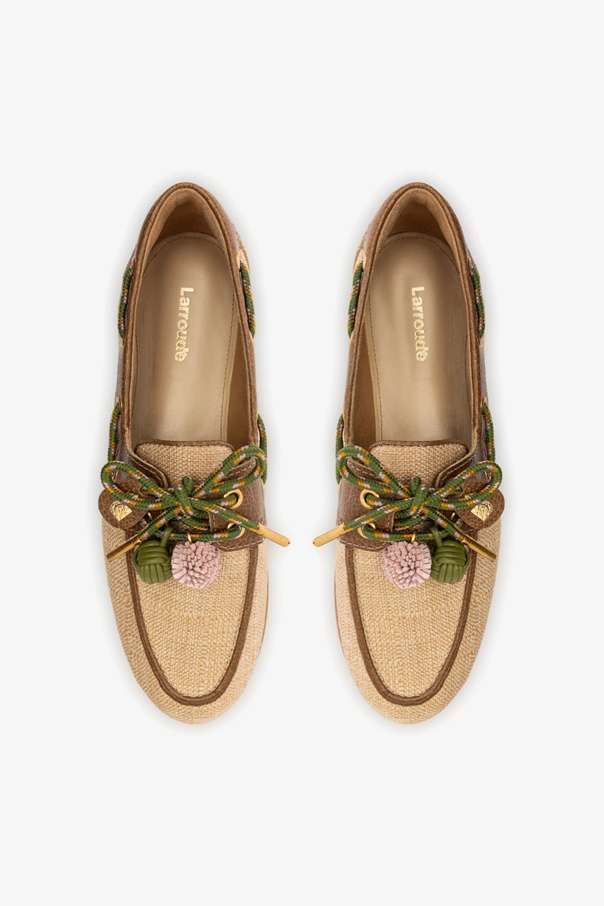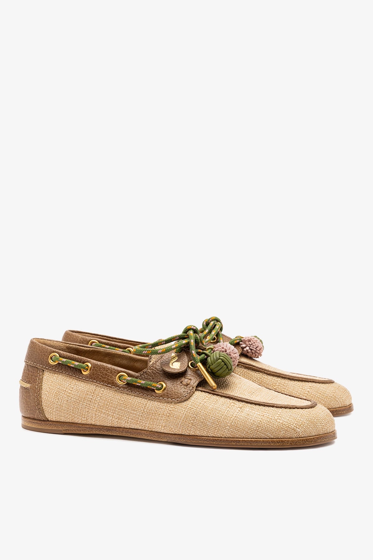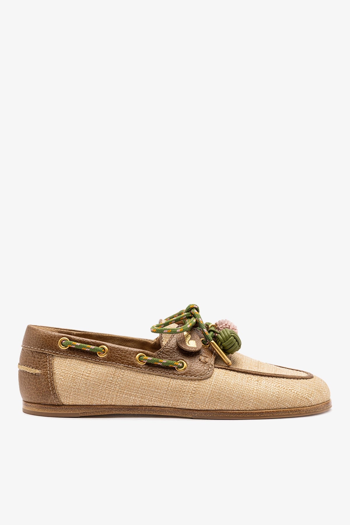 Cyprus Boat Shoe In Beige Raffia And Brown Leather