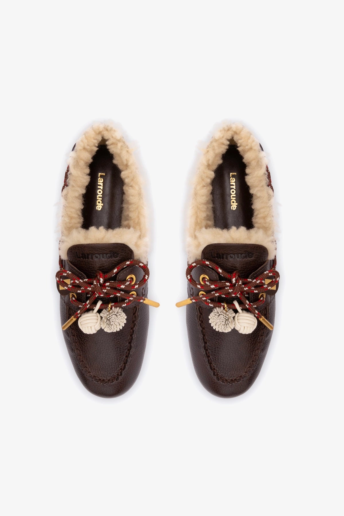 Cyprus Boat Shoe In Brown Leather And Ivory Shearling