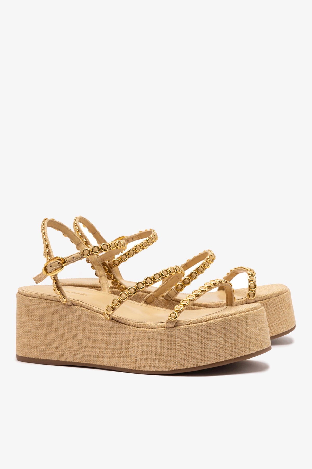 Introducing the barely-there elegance of the Gio with the of-the-moment appeal of our bestselling flatforms, this newest raffia must-have is a combination of all of our favorite things with an added platform base that delivers height and appeal.