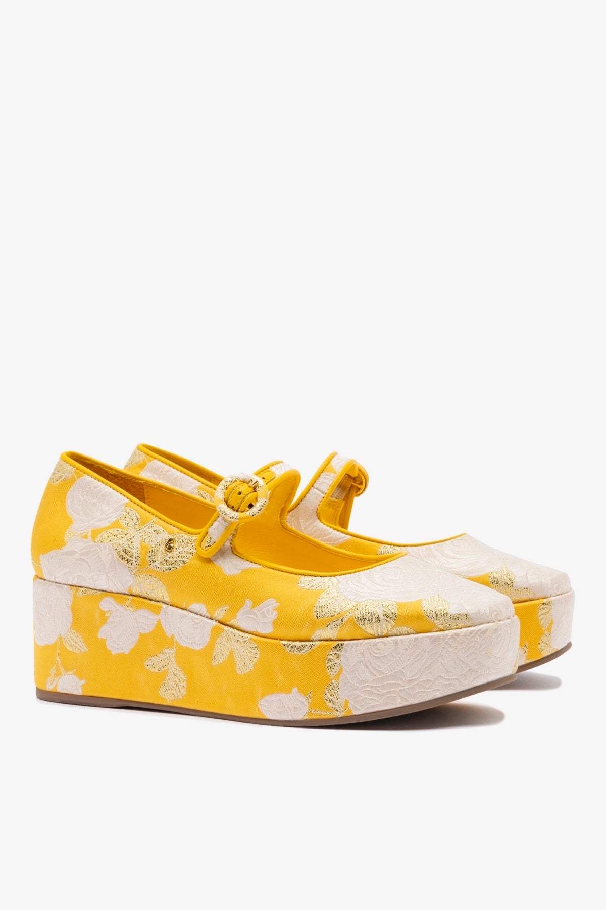 Larroudé x Markarian Blair Flatform In Yellow Floral Brocade