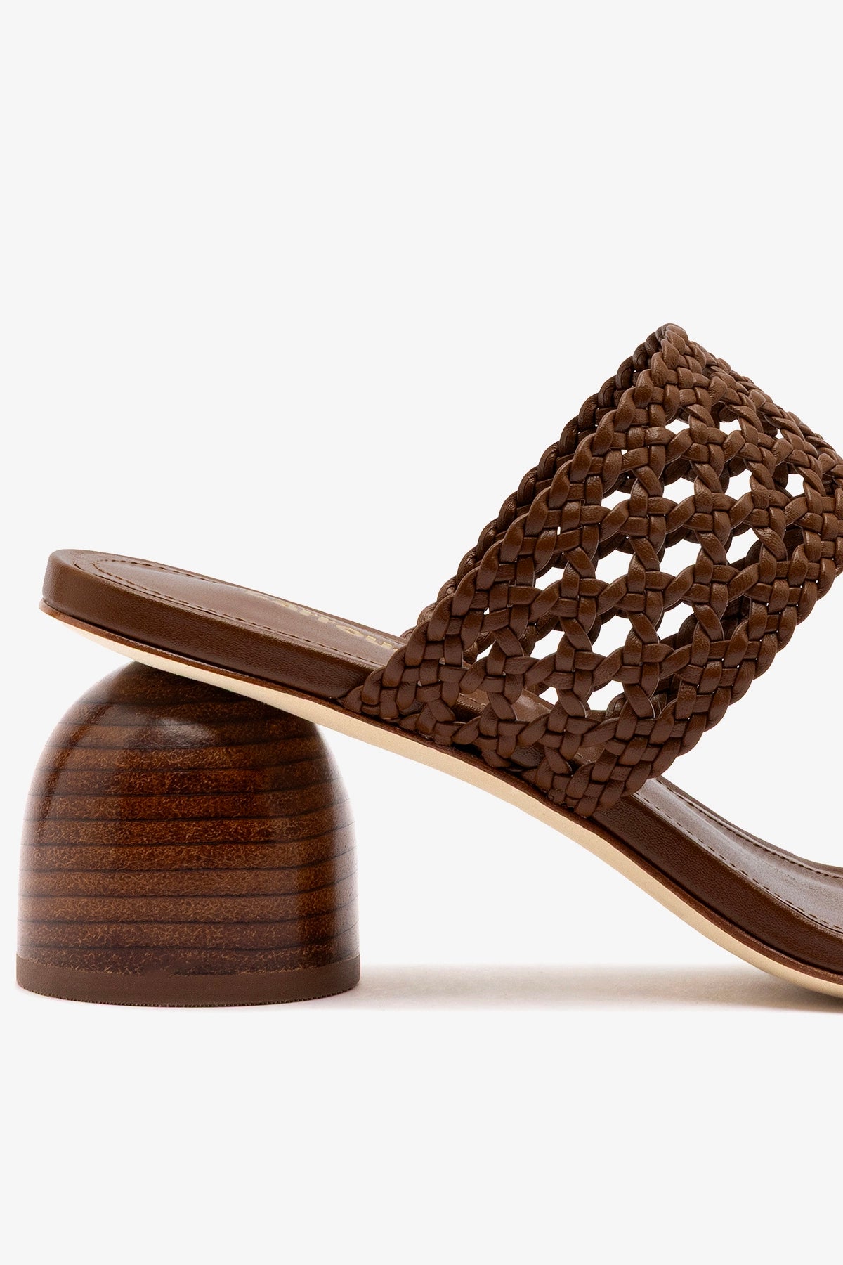 Dew Drop Macrame Sandal In Burnt Umber Leather