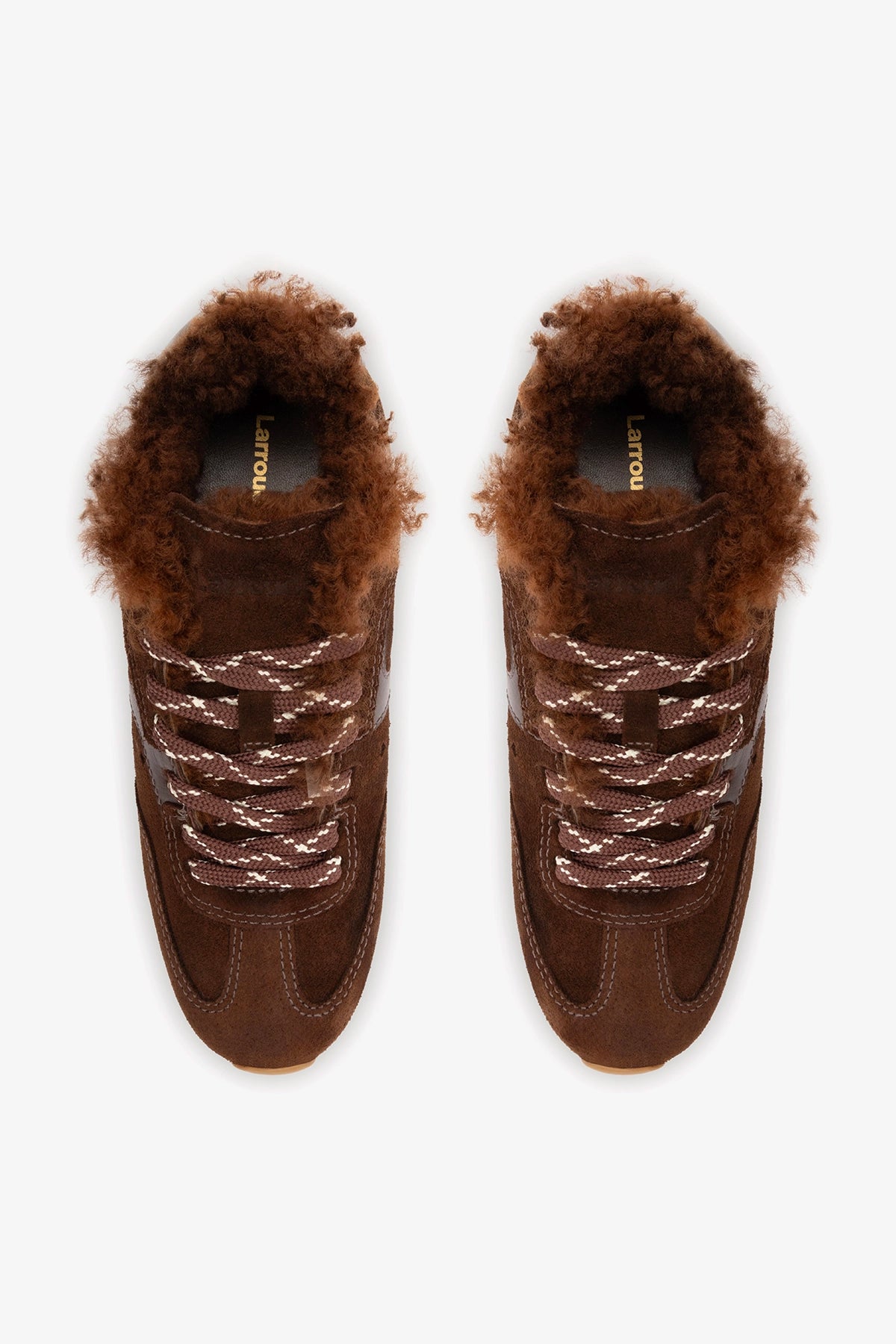 Stella Sneaker In Mushroom Brown Suede and Brown Shearling