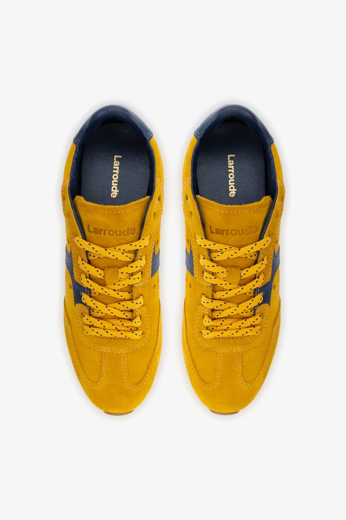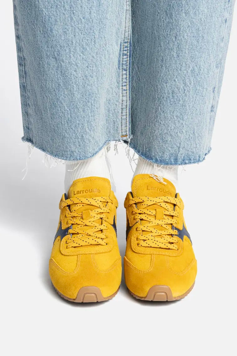We're in our athletic era! Our best-selling Stella sneaker is proof that comfort and style can coexist—and stand out. Now in a super fashion-forward yellow suede with navy leather accents, it brings a modern edge to any look, from city strolls to weekend getaways.