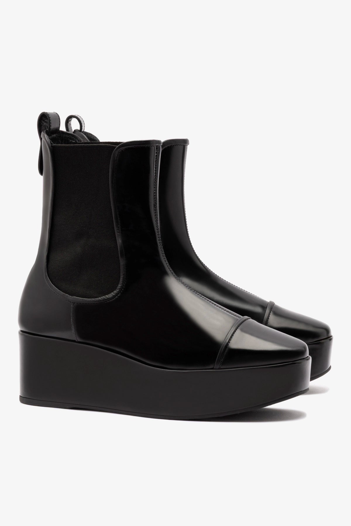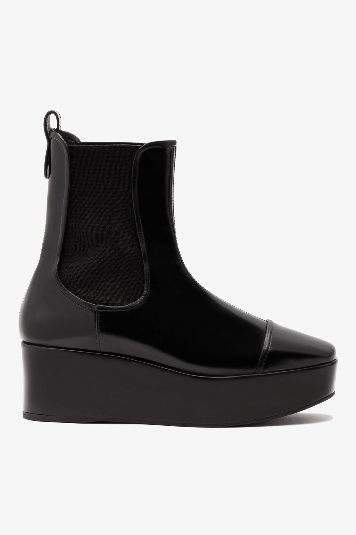 This flatform ankle boot is crafted in ultra-sleek glossy box leather that hugs the ankle for a flawless, sock-like fit. Set on a bold yet wearable platform sole, it’s the boot that goes with everything and stands out doing it.
