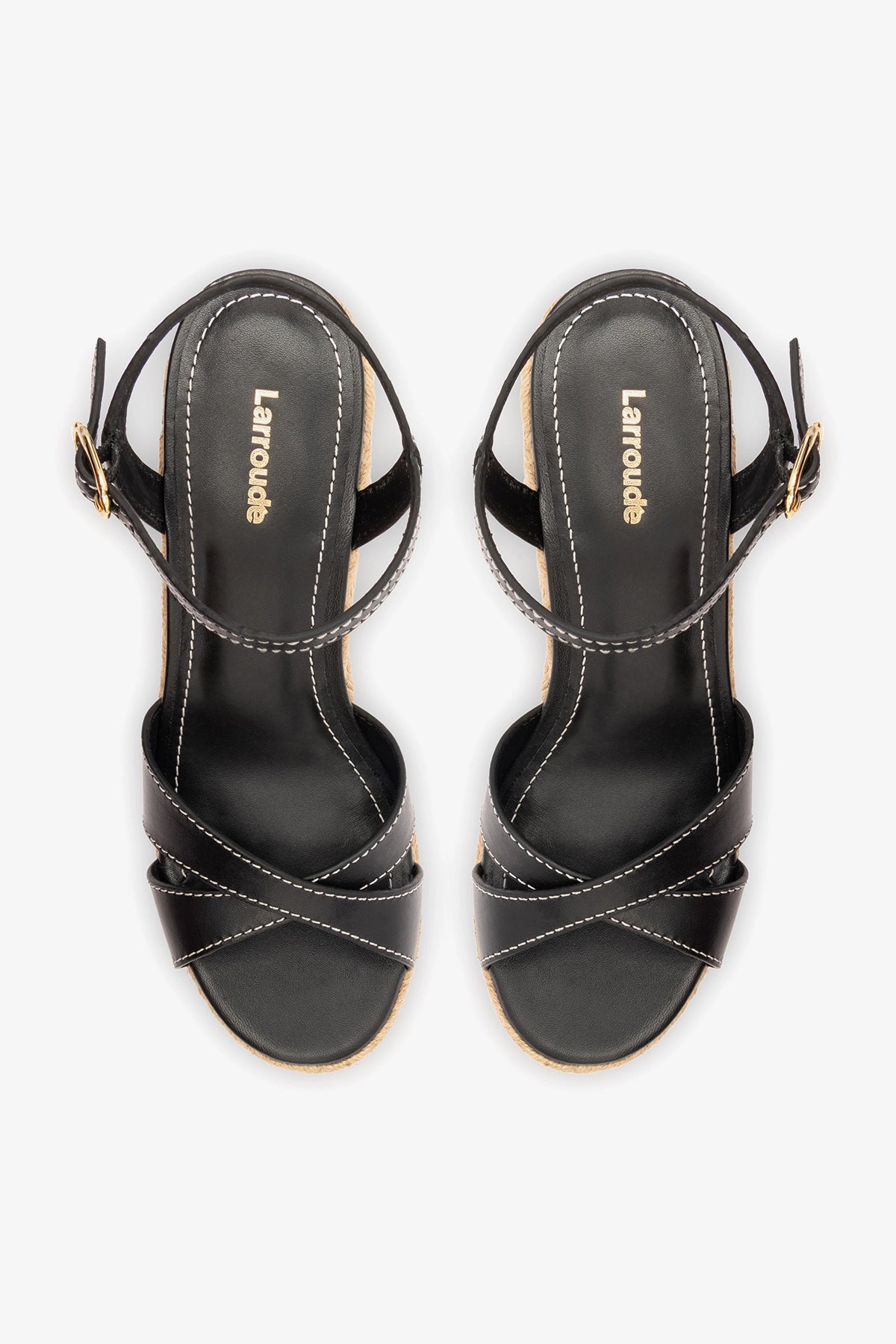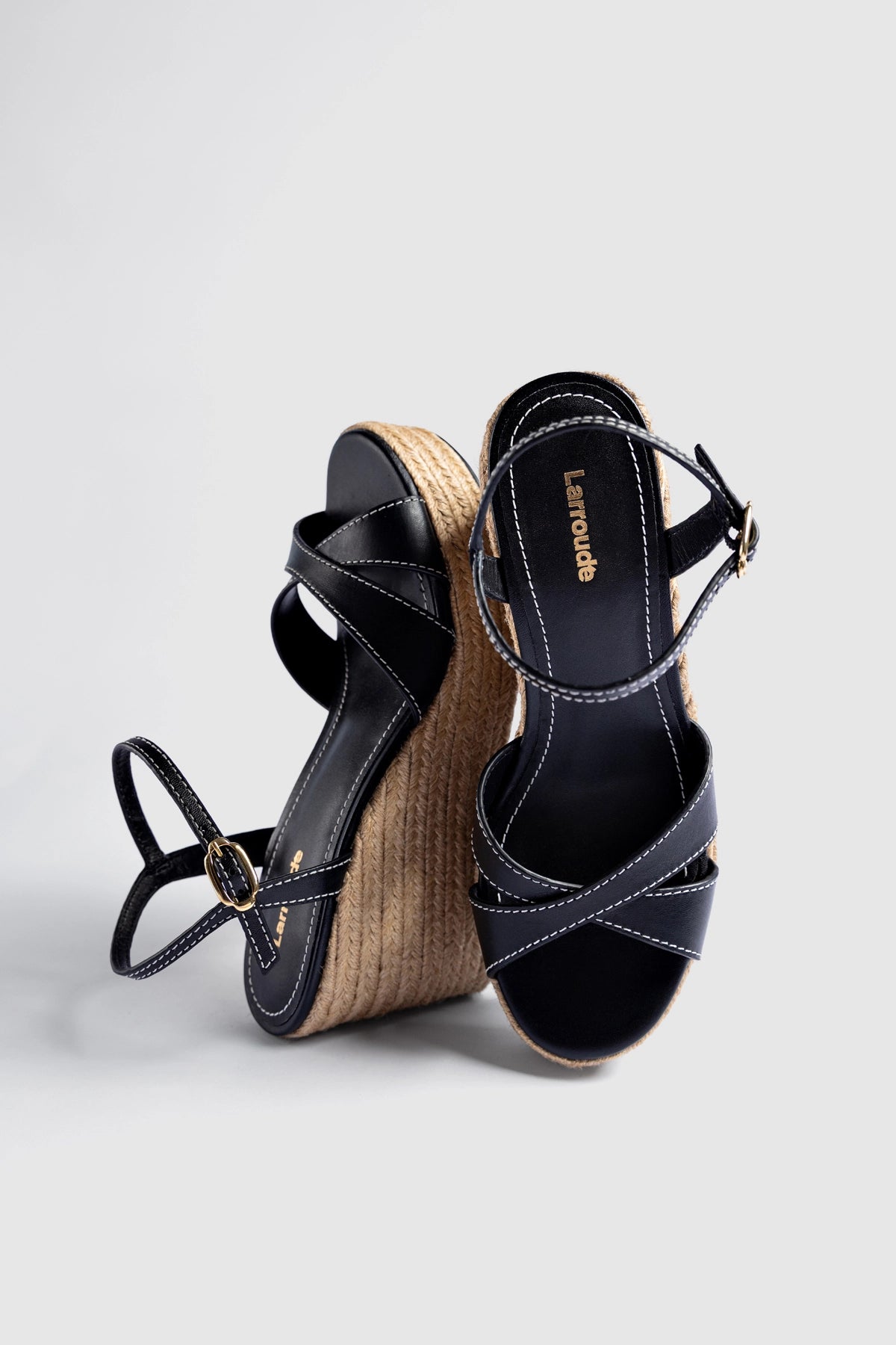 Platform espadrille wedge sandal featuring a natural jute sole and a leather upper. The strappy design offers a secure fit, while the wedge heel provides height with comfort for all-day wear.