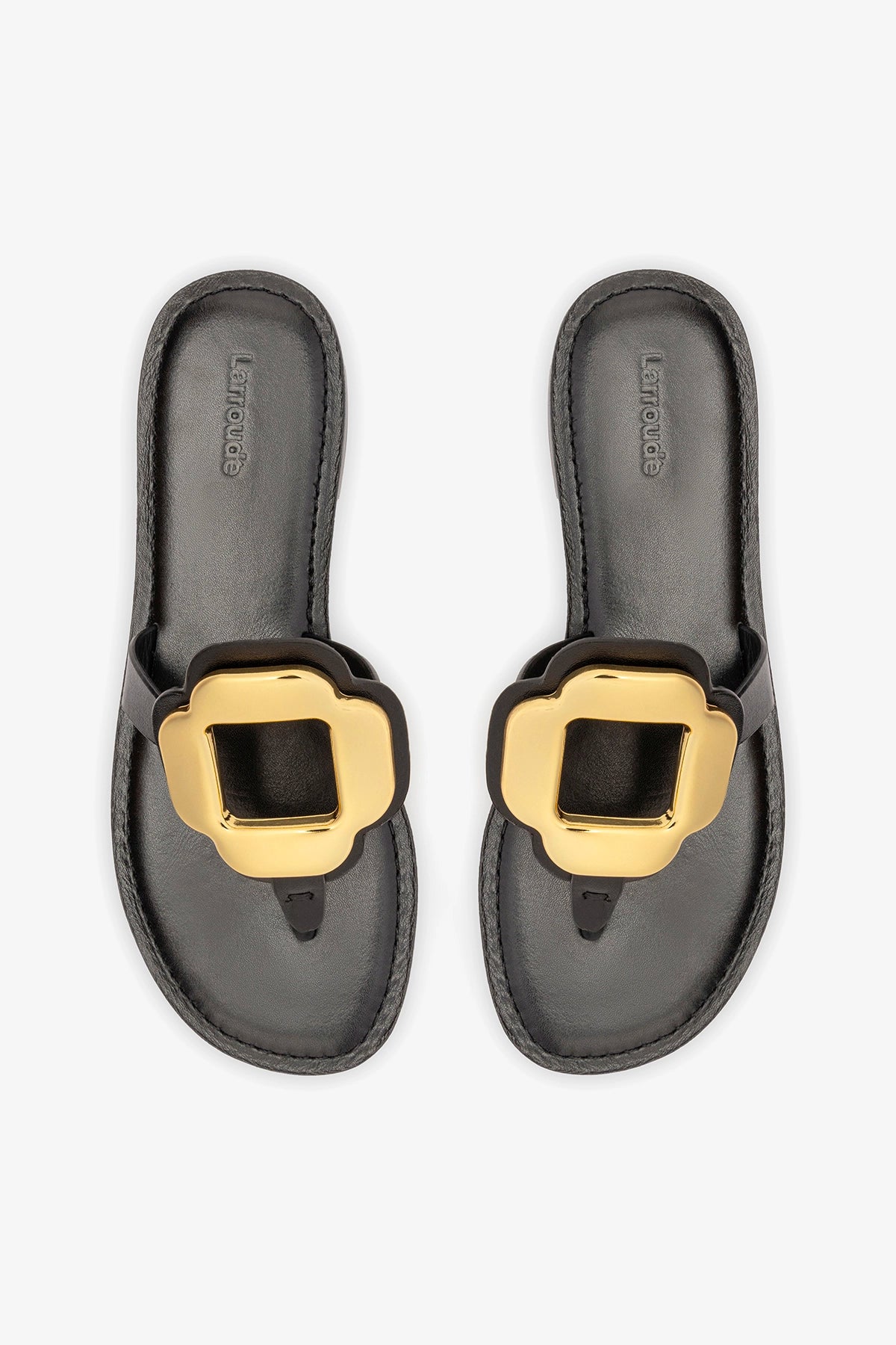 • Insole with Larroudé Cloud memory foam cushion and hot stamp logo