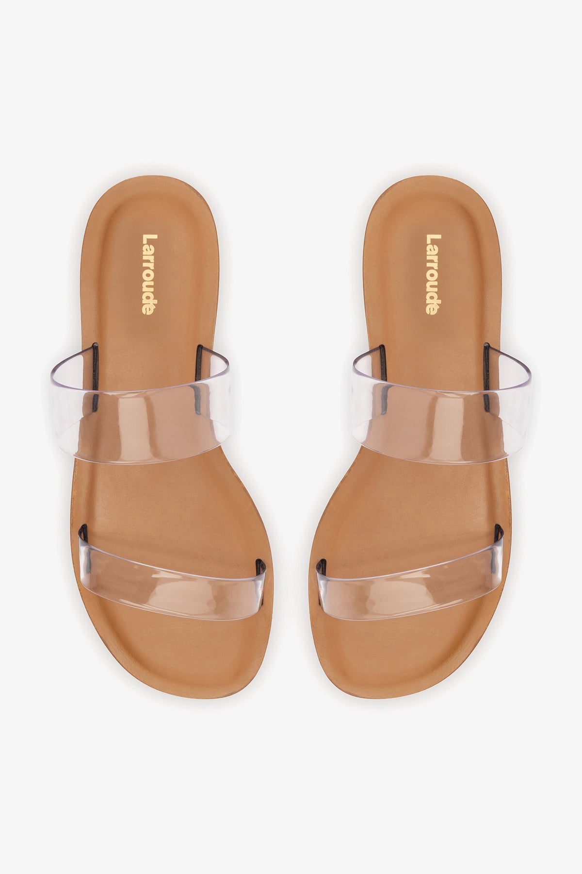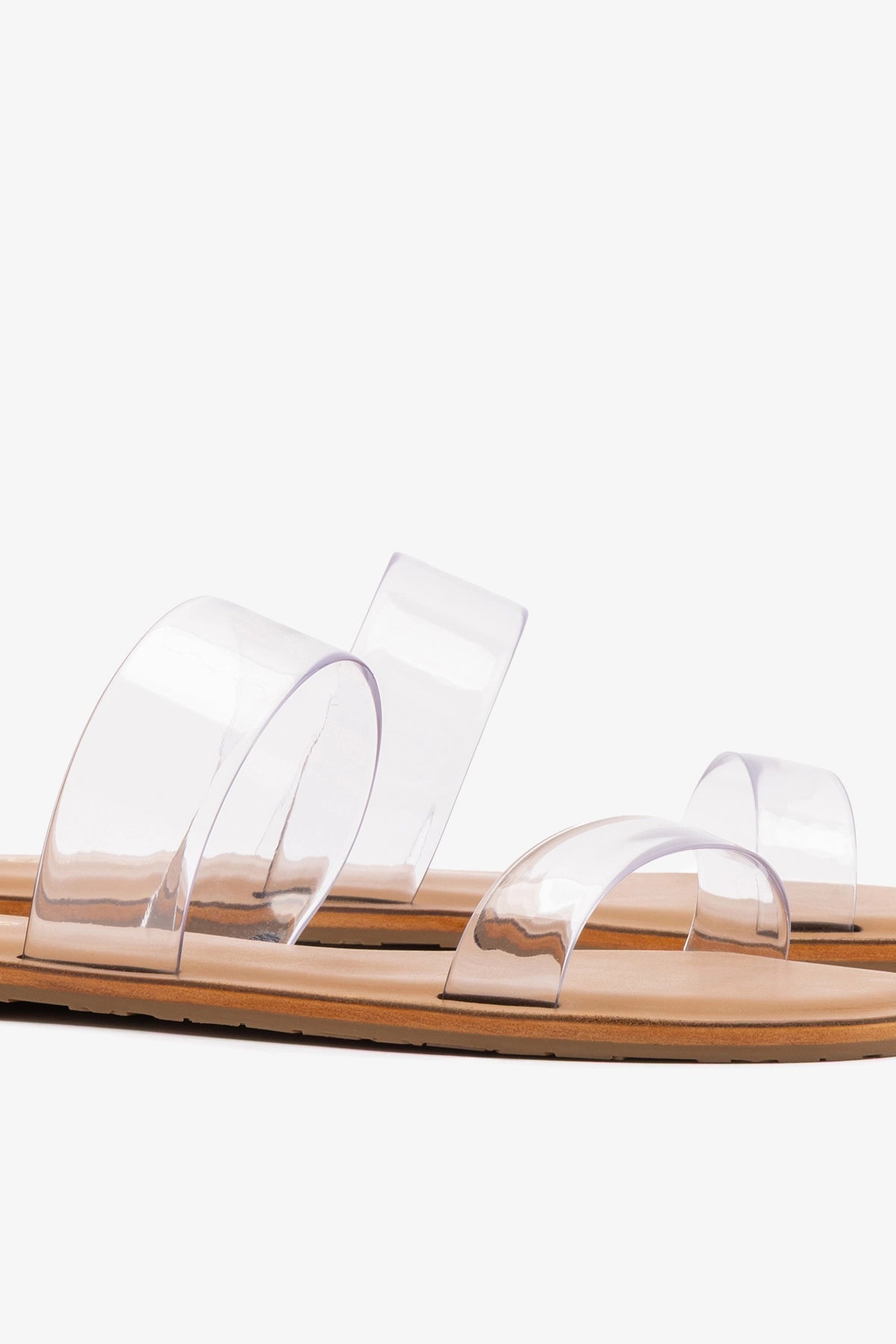 Gabe Flat In Clear Vinyl and Caramel Leather