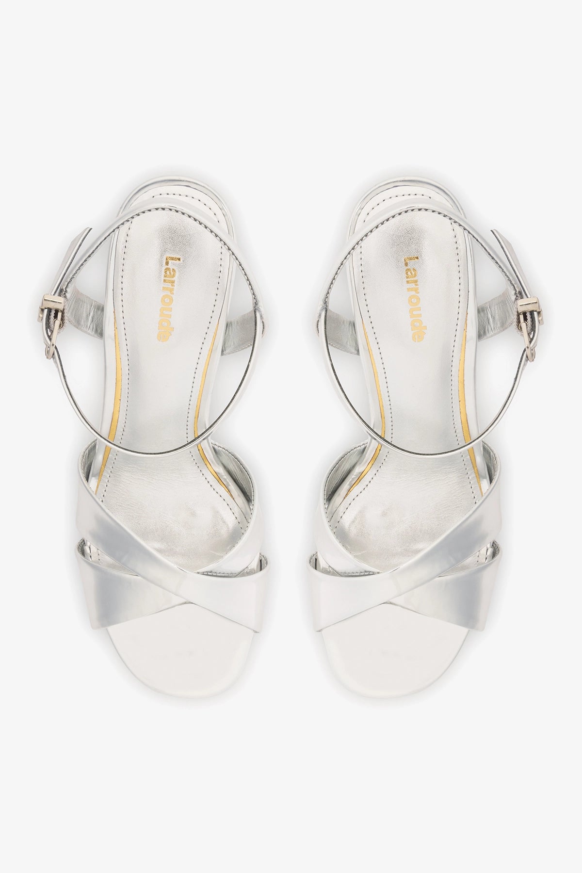 The Bianca High features clean lines and bold proportions for a striking yet timeless look. The high heel with a platform adds height and stability, while the specchio finish brings a refined touch of elegance. Crossed front straps and an adjustable ankle buckle complete the design, making it perfect for special occasions that call for statement style with comfort.