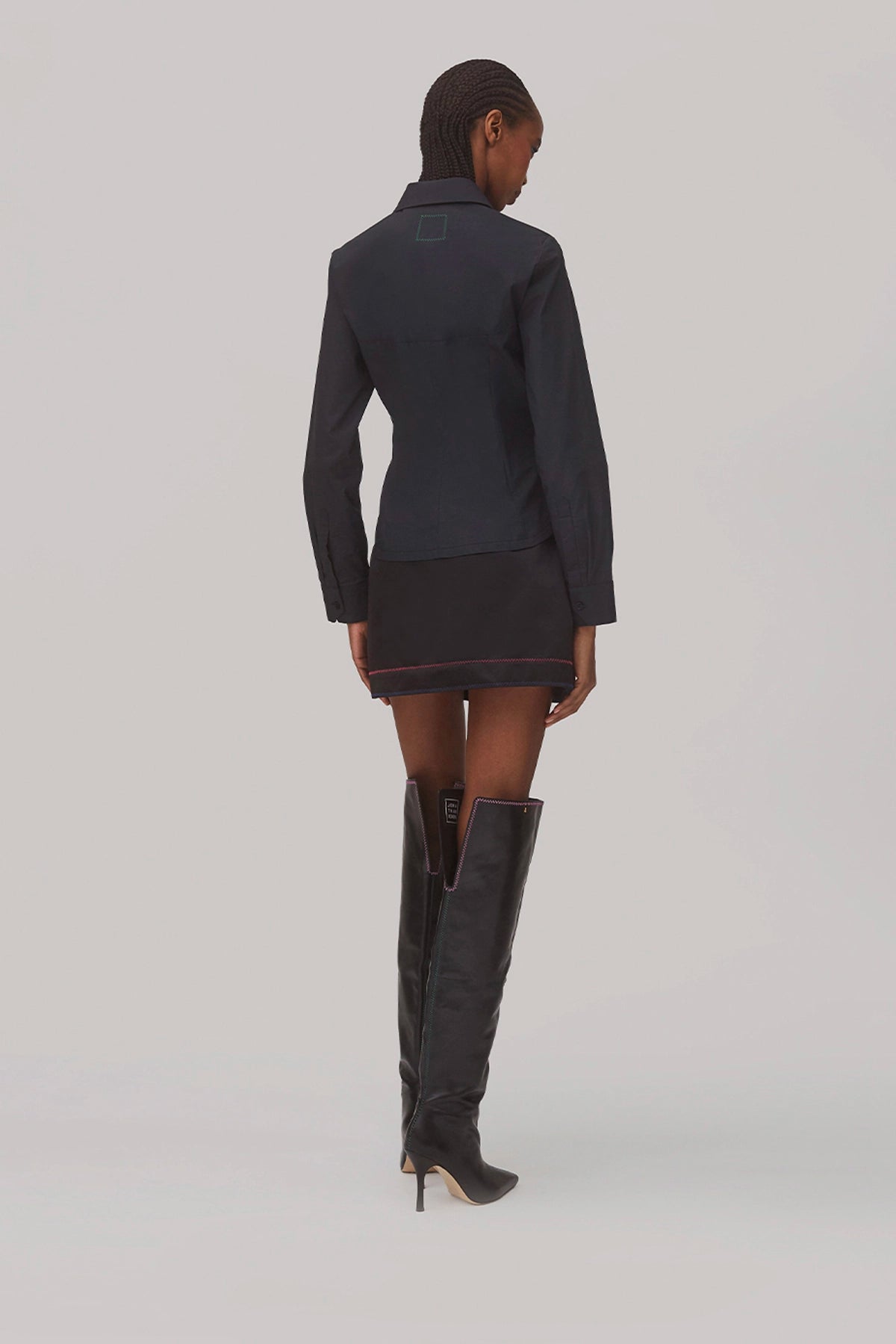 Bustier top in black percale, designed with a structured fit and a clean, minimalist finish. The streamlined silhouette flatters the body while offering versatility for different styling options.
