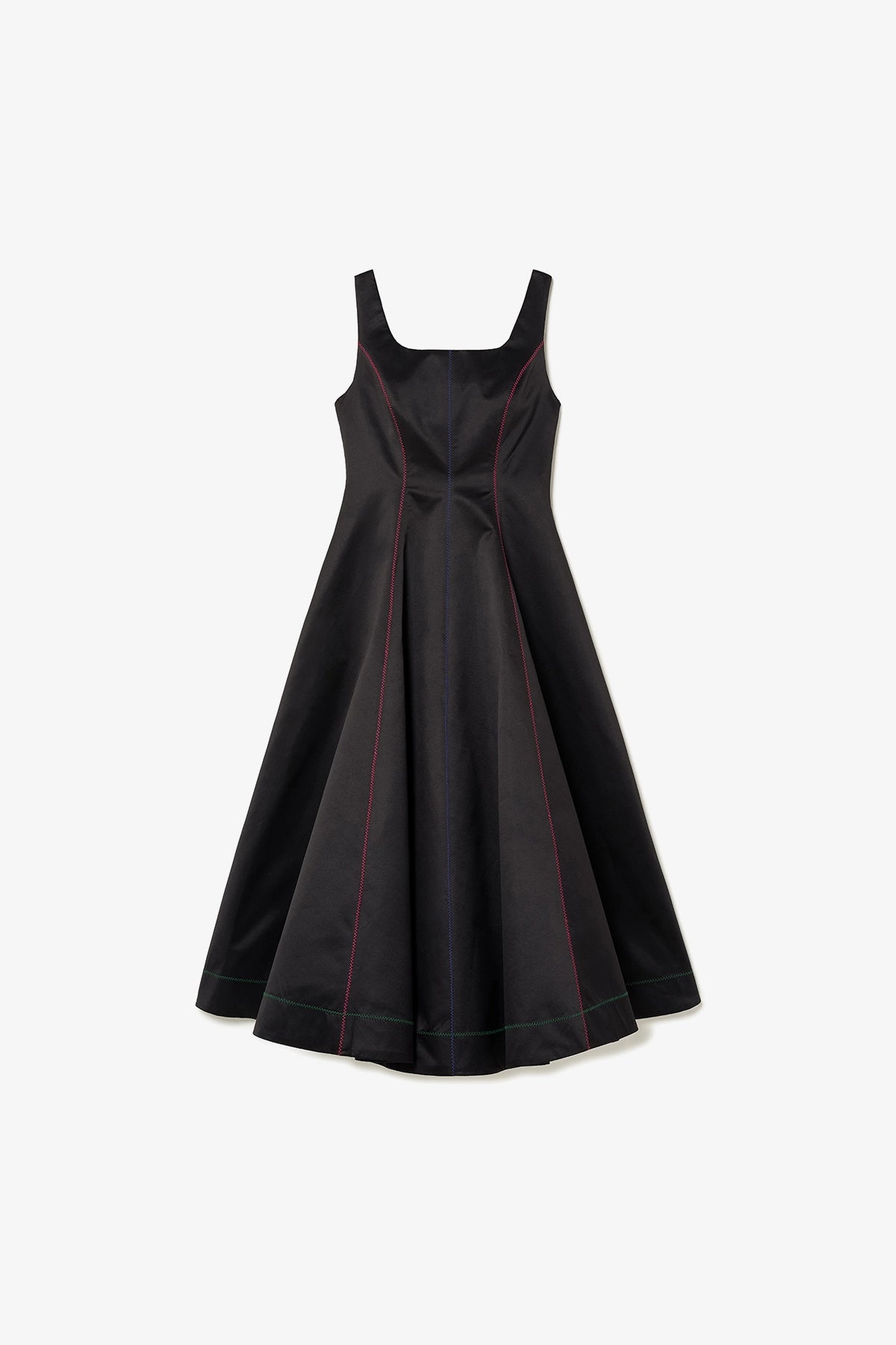 Black satin dress designed with a fluid drape and a silhouette that naturally flatters the body. The sleeveless design keeps the look clean, while the subtle sheen of the fabric adds movement and impact.