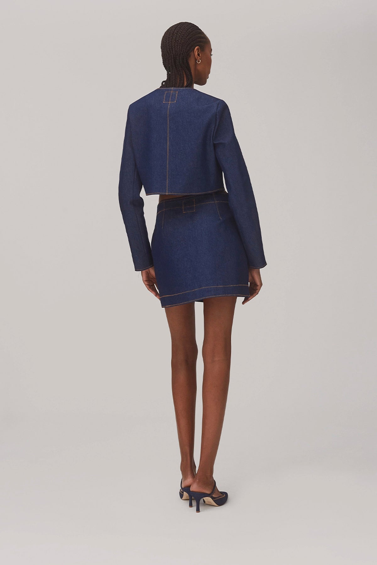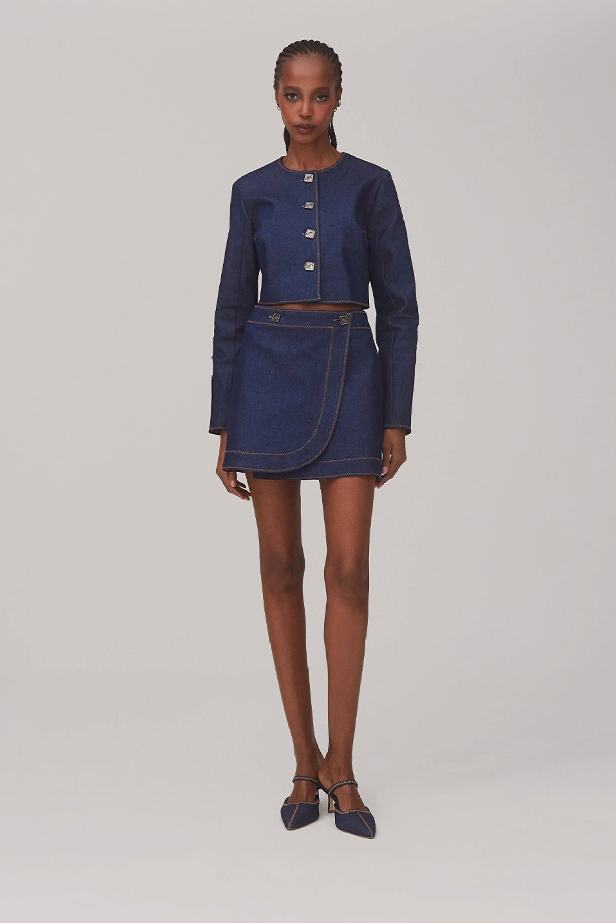 Cropped denim jacket in blue, designed with a lightweight structure and clean finish. The straight silhouette offers a balanced fit, while the cropped length adds a modern, versatile touch to everyday looks.