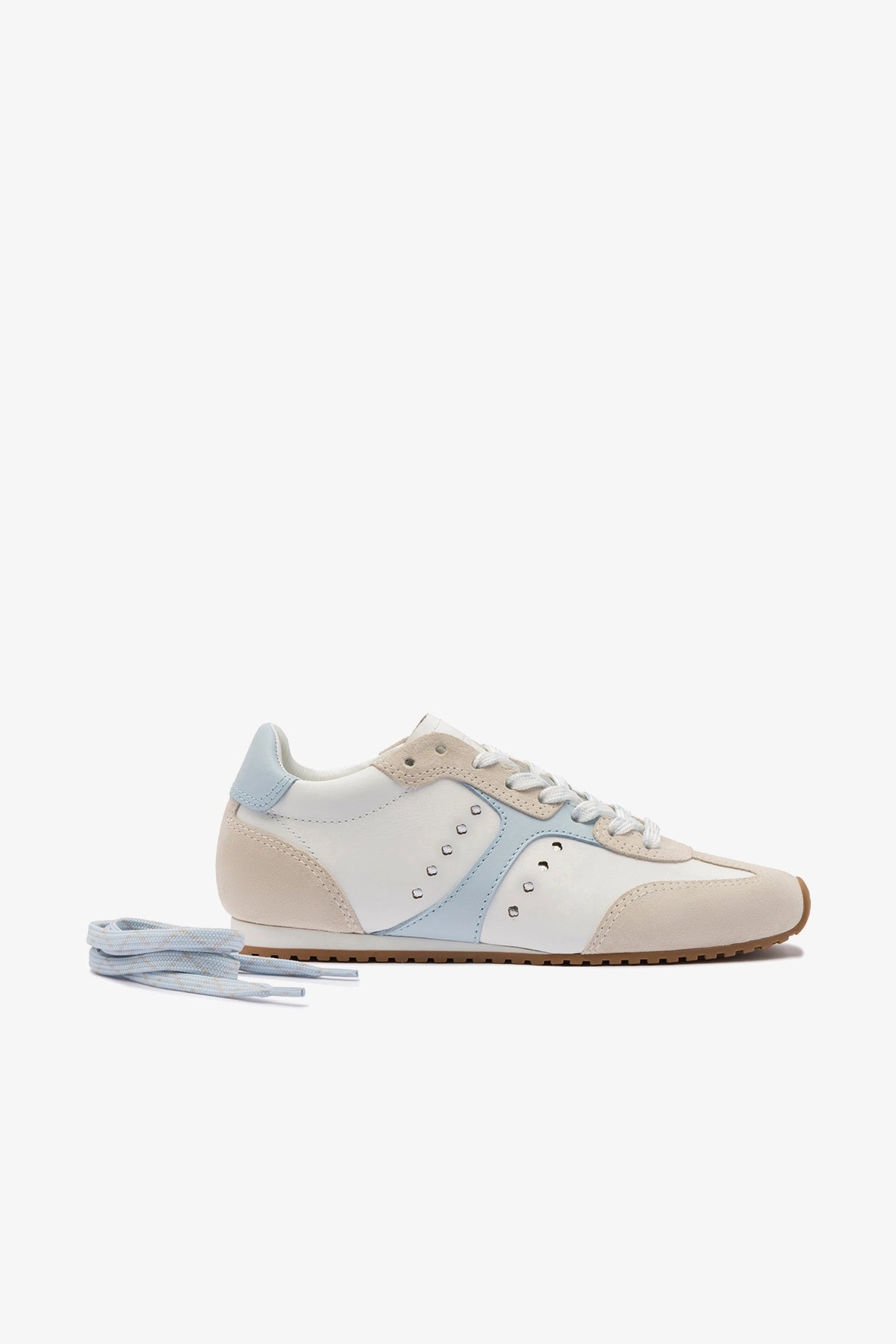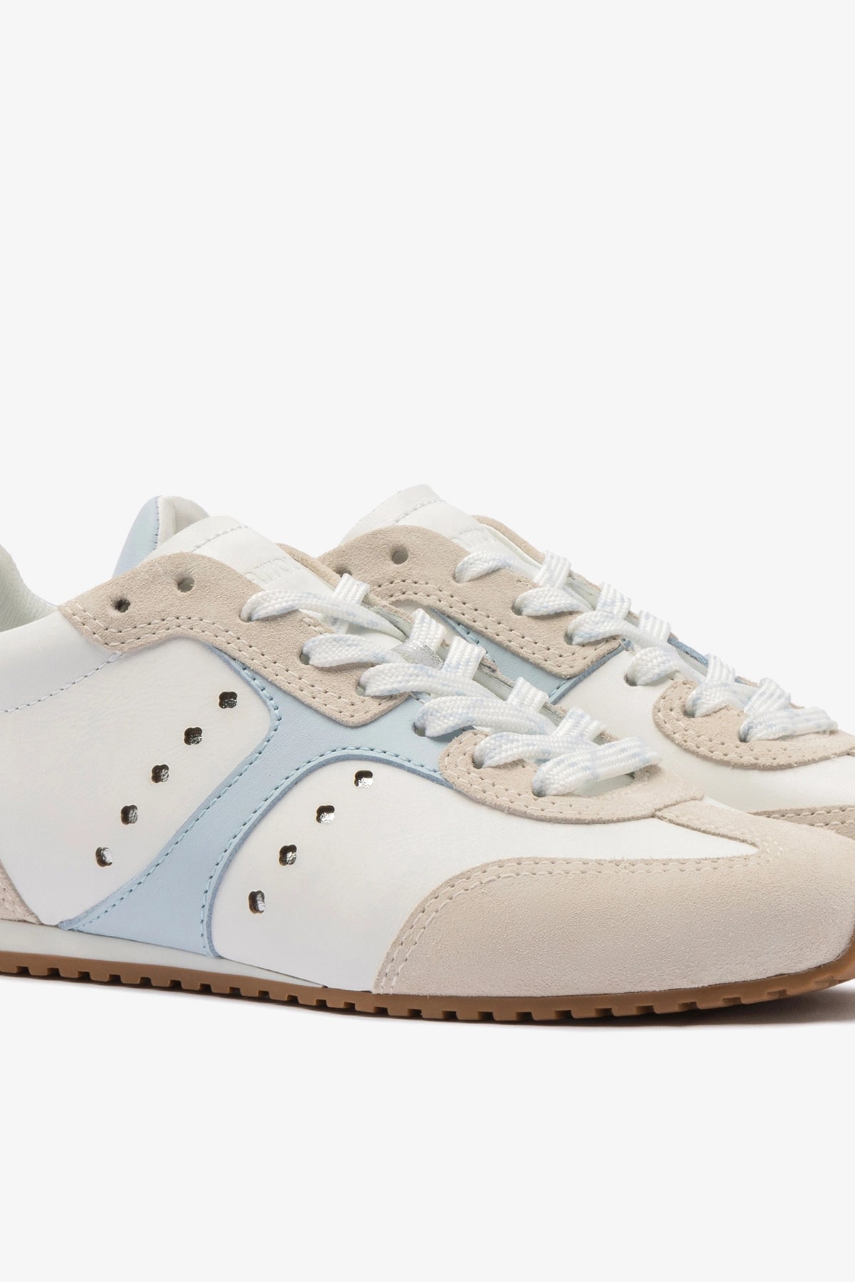 We're in our athletic era. Introducing the very first sneaker by Larroudé, the Stella blends functionality and form with fashion, in a versatile blend of white and silver that you can wear with anything from day dresses and denim to workout gear at the gym.