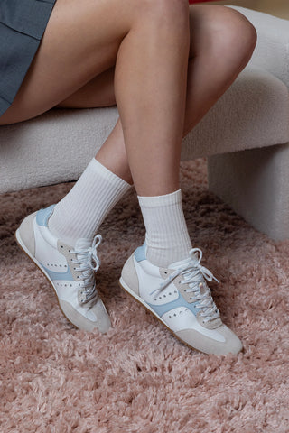 Larroudé x Jonathan Cohen Flat Lo Sneaker Boot In Dodger Blue and Gardenias Colored Satin