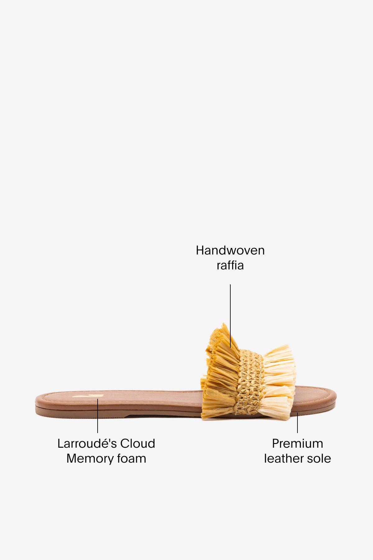- Calf skin leather and raffia upper