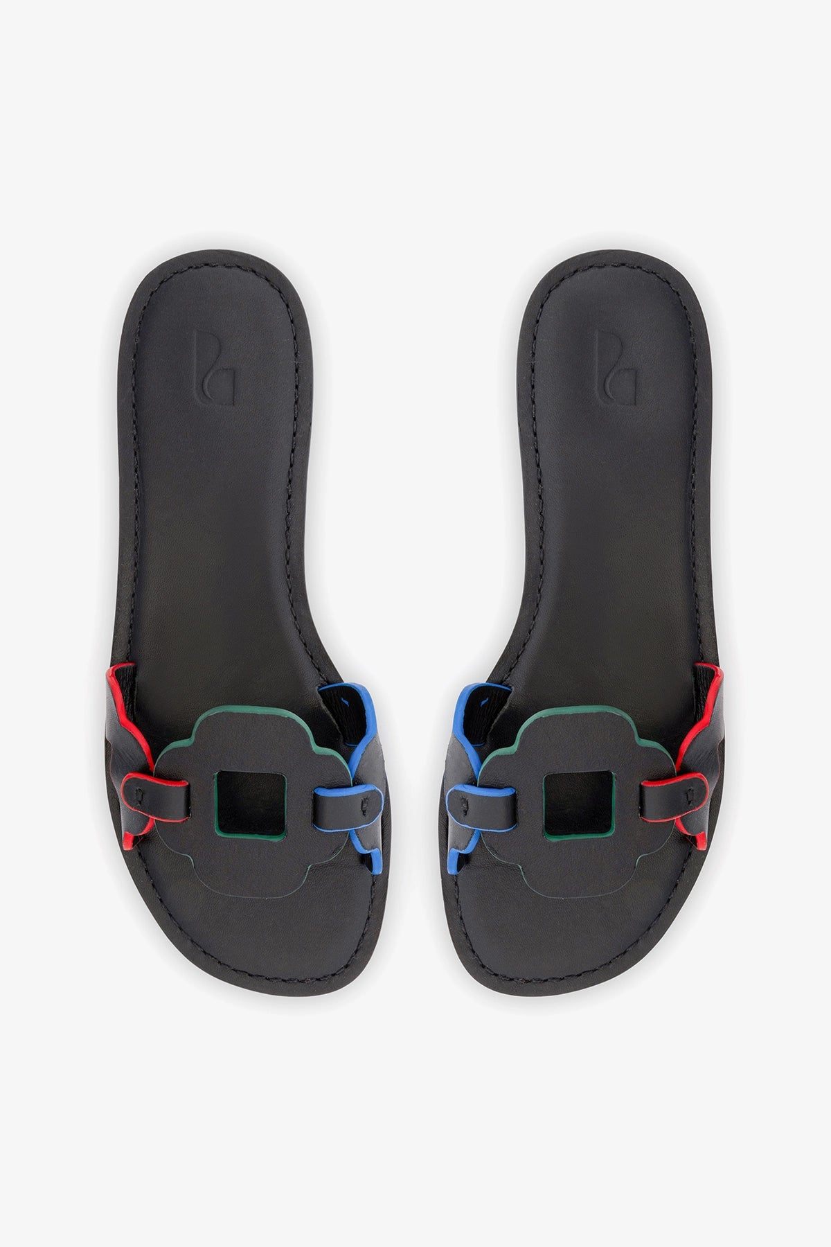 The Margherita Slide brings a playful twist to everyday dressing. Designed with multicolor floral detailing and soft leather, it adds an instant dose of personality to anything you pair it with—from straight-leg denim to tailored shorts.