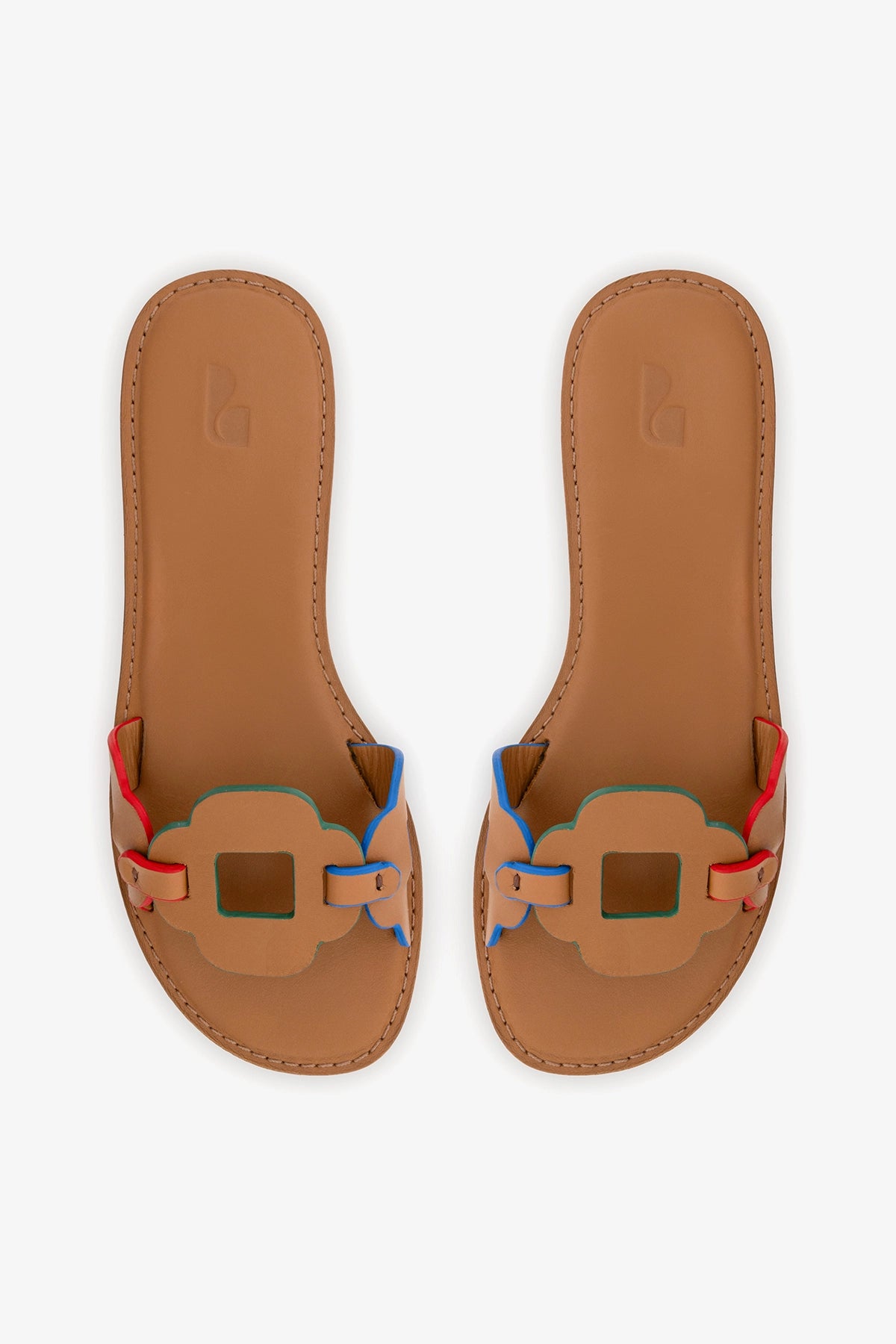 The Margherita Slide brings a playful twist to everyday dressing. Designed with multicolor floral detailing and soft leather, it adds an instant dose of personality to anything you pair it with—from straight-leg denim to tailored shorts.