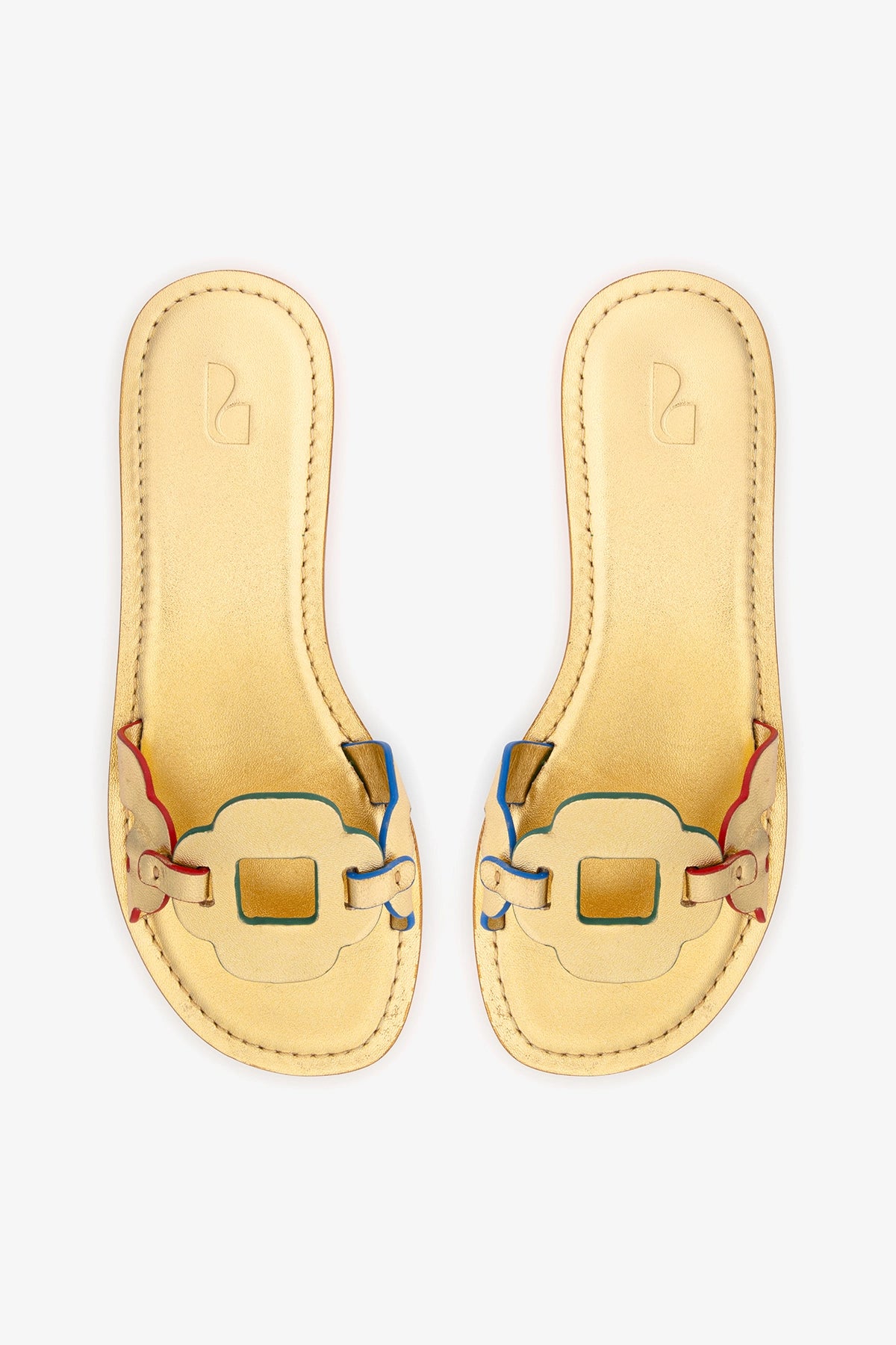 The Margherita Slide brings a playful twist to everyday dressing. Designed with multicolor floral detailing and metallic leather, it adds an instant dose of personality to anything you pair it with—from straight-leg denim to tailored shorts.