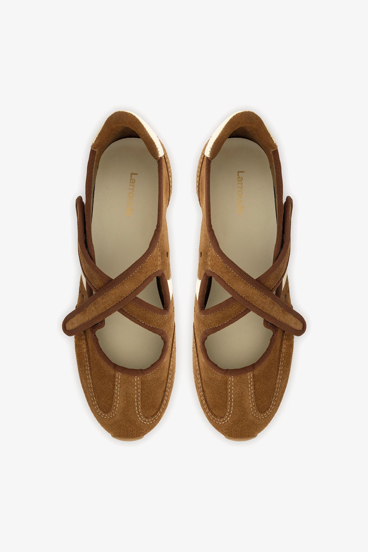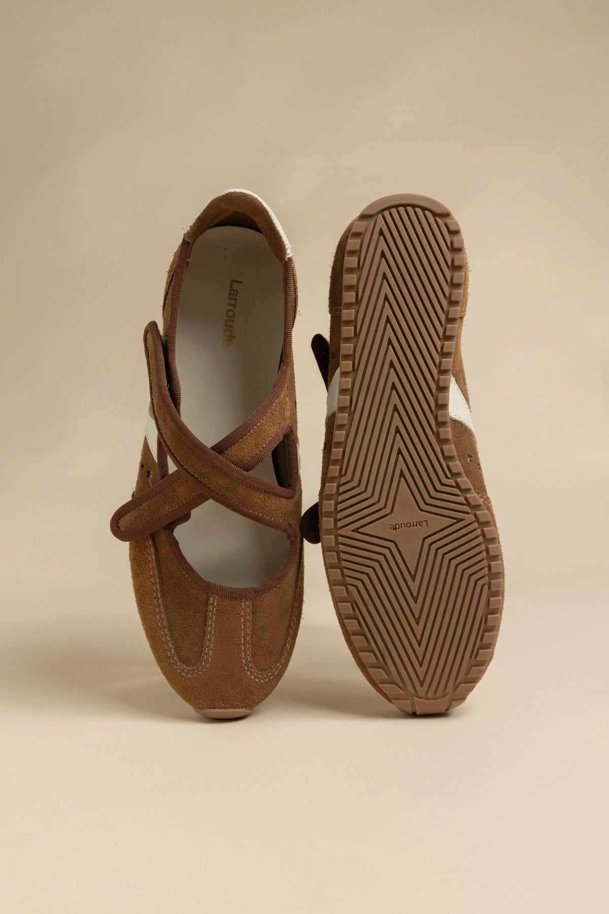 The Stella Ballerina reimagines one of Larroudé’s most iconic silhouettes through the sporty ballet flat trend. Inspired by our best-selling sneaker, it features soft suede, leather accents, and a criss-cross strap closure for a comfortable, modern feel.