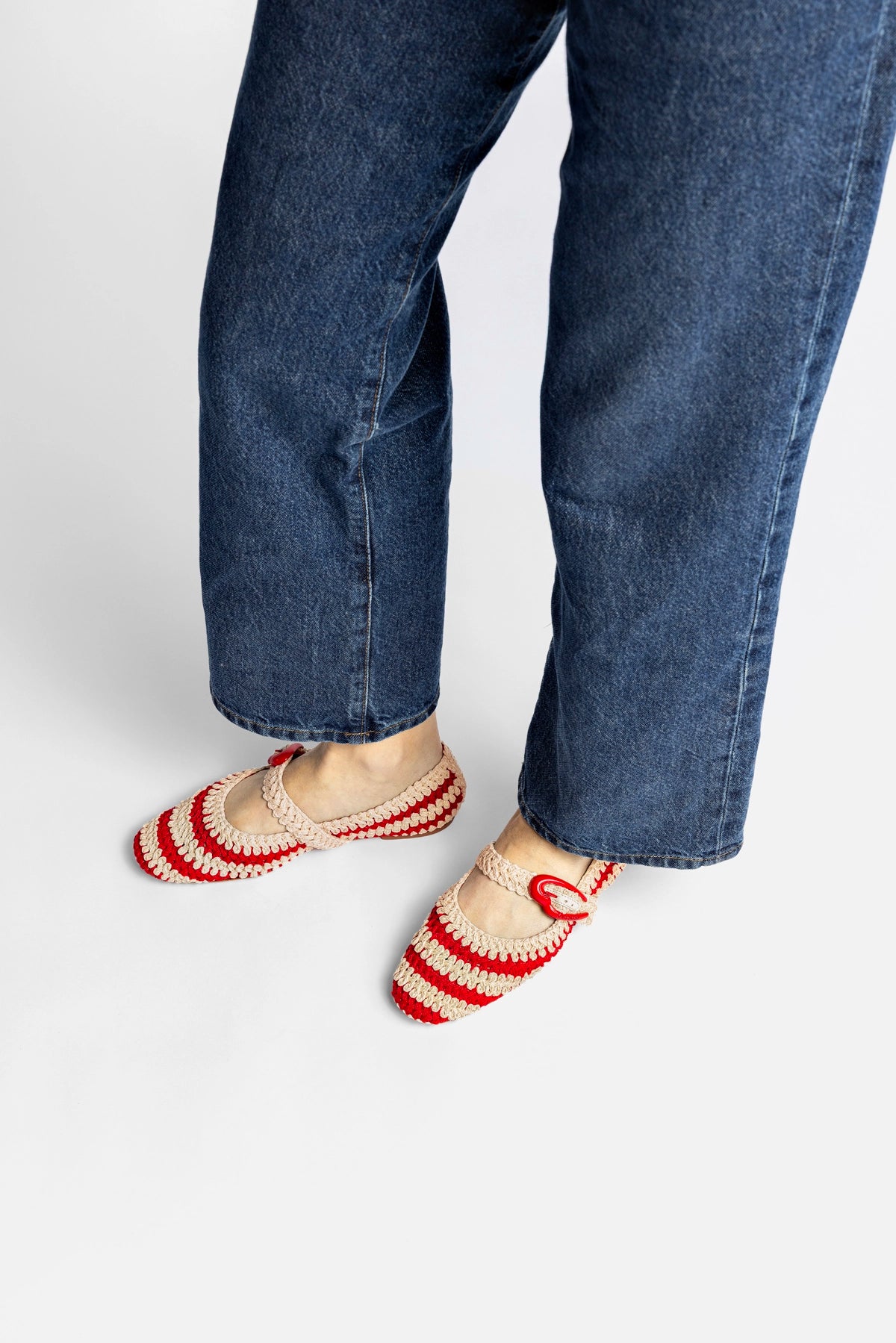 The Verona Crochet is the super artsy take on our best-selling ballet flat, featuring bold two-tone weaving and an oversized heart-shaped buckle strap for a secure, comfortable fit. Lightweight, textured, and full of character—a standout piece for everyday wear.