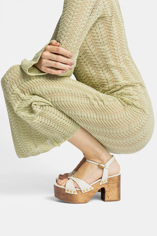 Cyprus Crochet Boat Shoe In Natural Crochet and Russet Leather