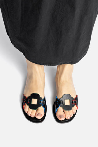 Biarritz Flat Sandal In Lemonade, Maya and Oud Python Embossed Leather
