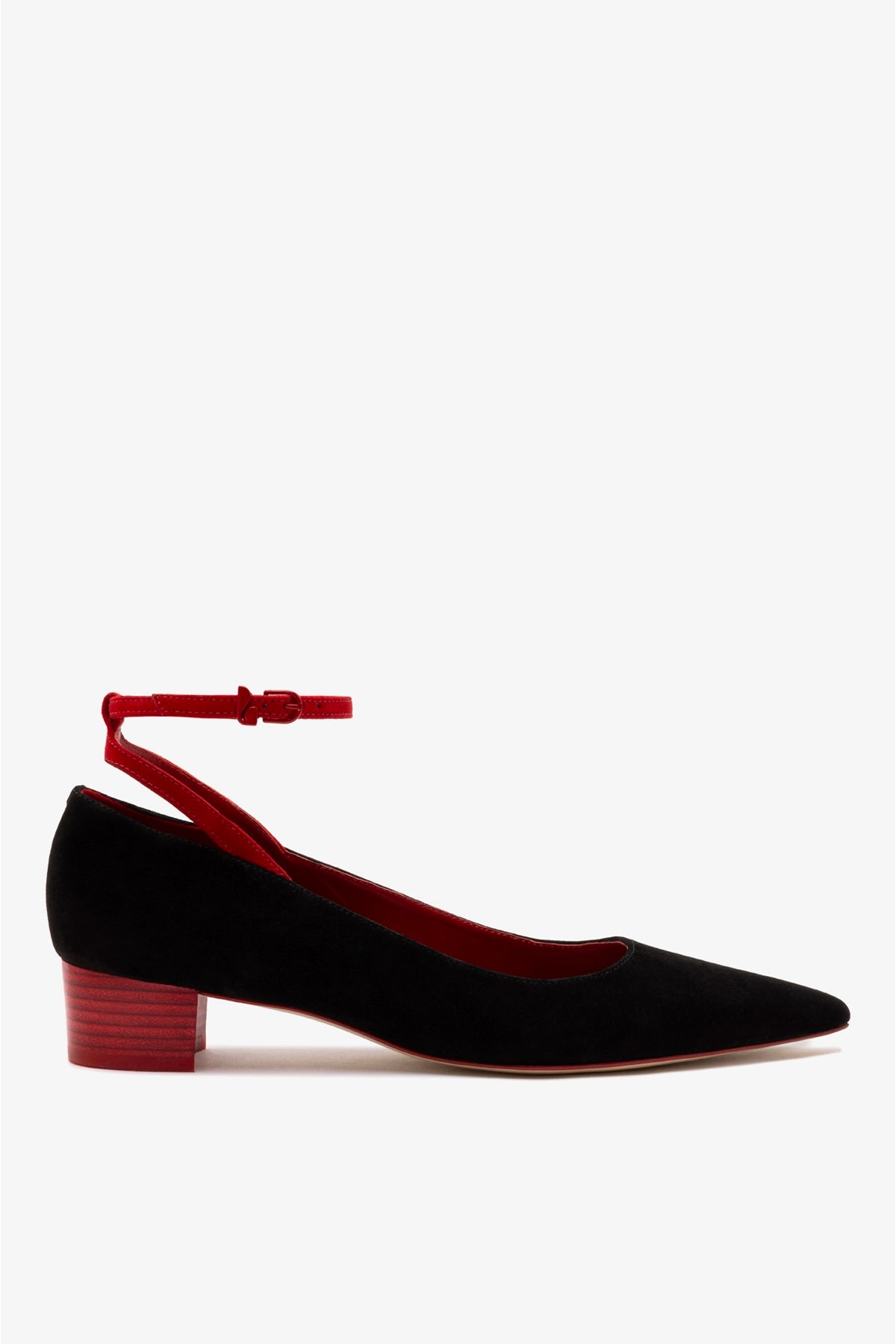 One of the most creative minds in fashion, Candy Pratts Price brings her innovative view to our creations. This low-heel suede pump is the perfect mix of comfort and timeless style. Featuring a sleek pointed toe and an ankle strap for a secure fit, it brings a subtle yet refined touch to any outfit.