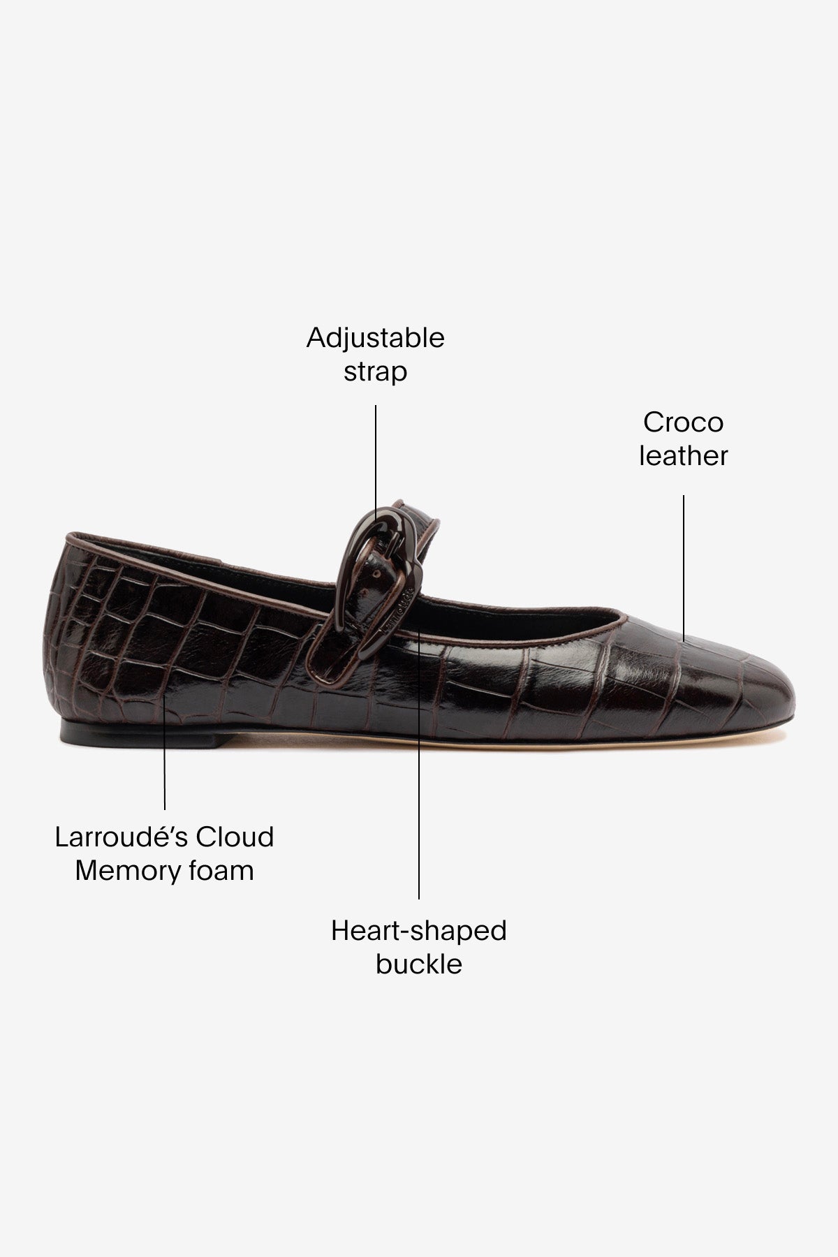 Inspired by a Shakespearean romance, the Verona mary jane is our reinterpretation of the ballet flat trend. The dark croco and the super delicate heart-shaped buckle are the details that transform this model in a go-to shoe.