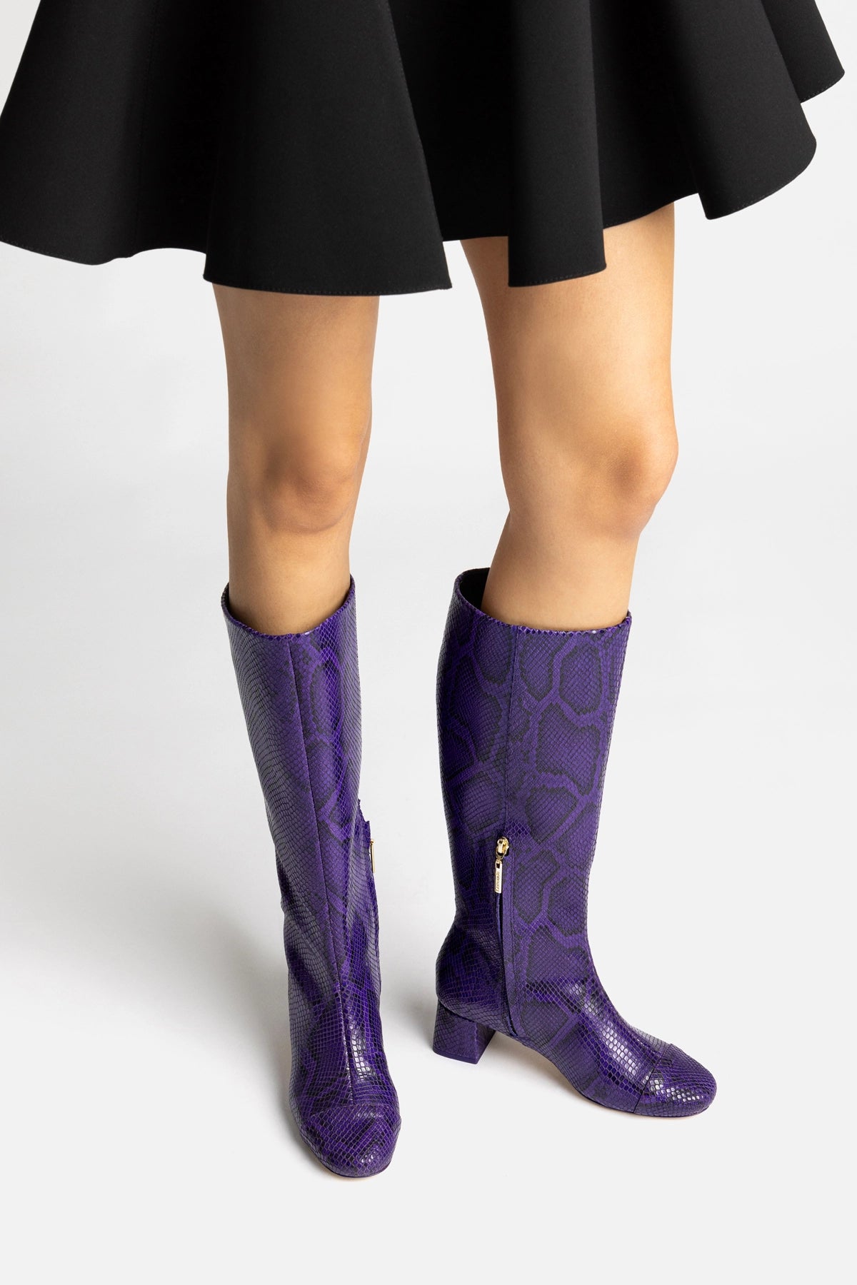 This mid-calf leather boot is the definition of understated polish. Set on a walkable block heel and crafted in playful, python-embossed leather, the Edie strikes the perfect balance between elevated and everyday wearable.