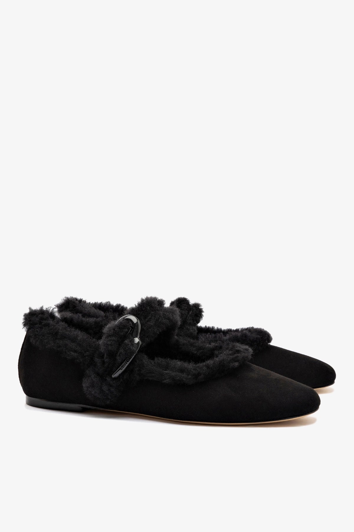 Verona Ballet Flat In Cocoa Leather And Natural Shearling