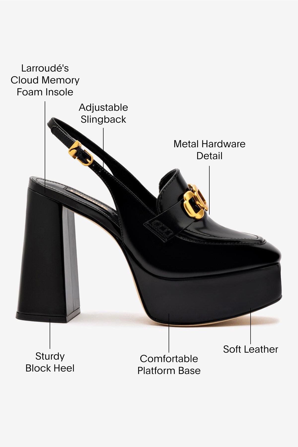 Reach new heights in this bold take on the classic loafer. Set on a sky-high platform and finished with a sleek slingback strap for a modern twist—and a secure fit—it's equal parts power move and everyday essential.