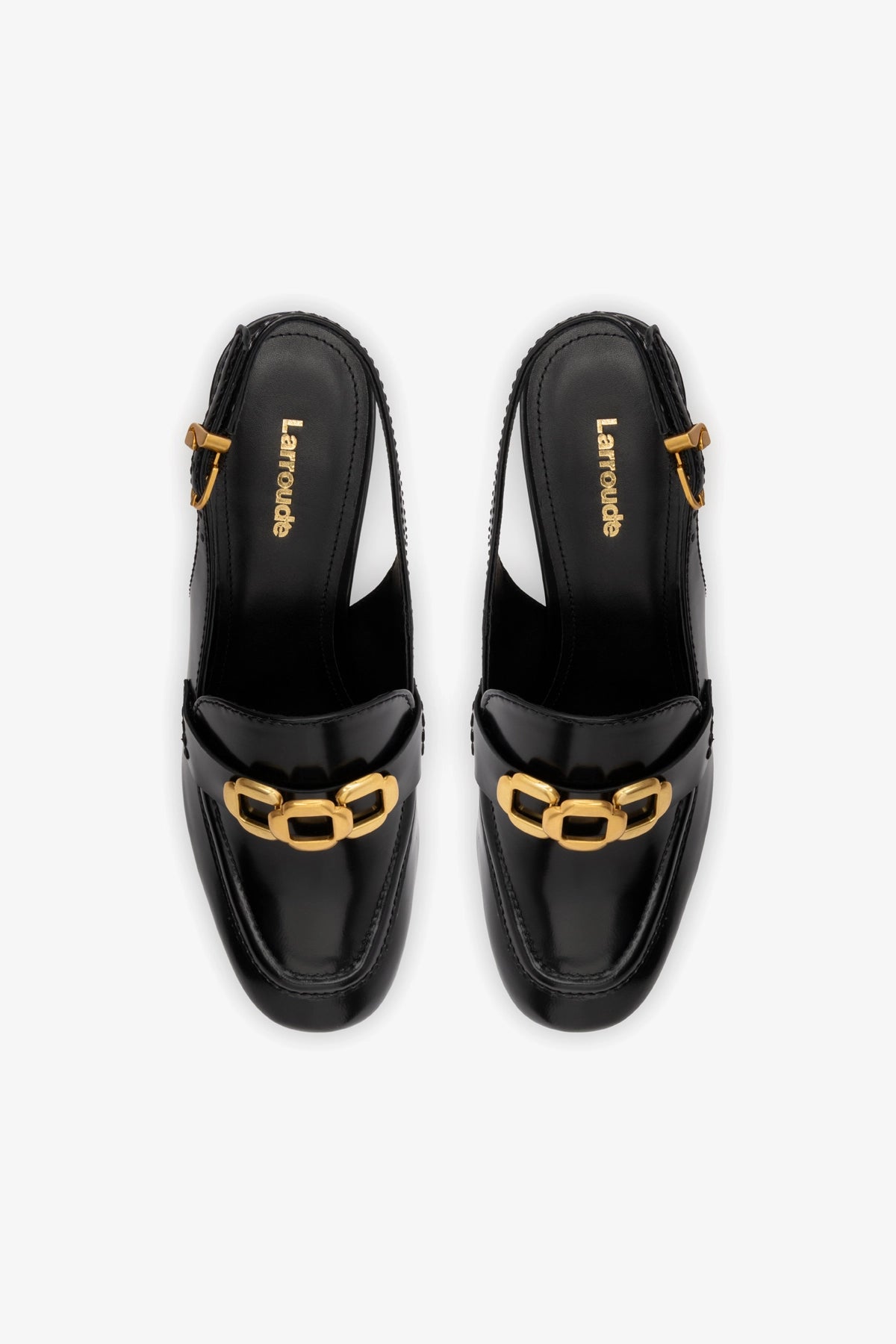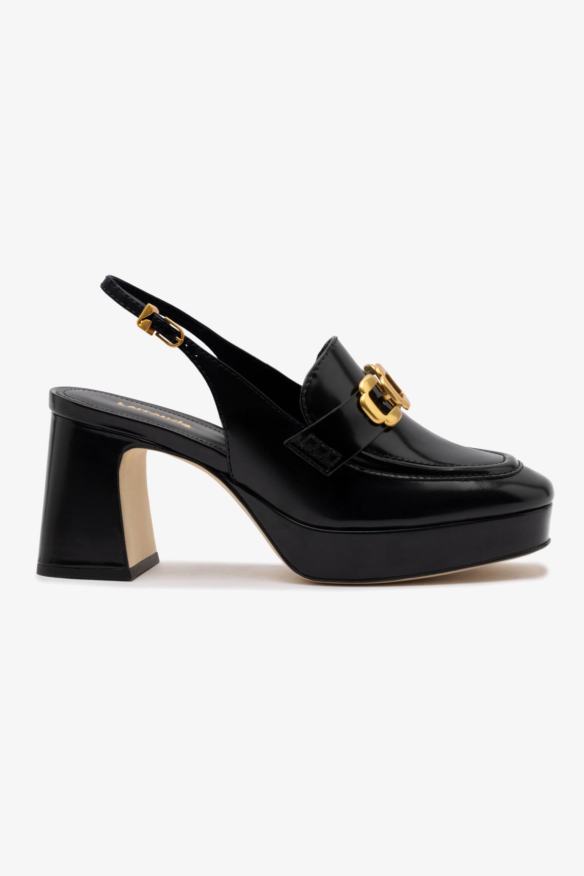 Harrington Low is the new take on our best-selling slingback, now in a lower heel with the same powerful platform. Crafted from glossy box leather and with the signature golden buckle, it brings a sturdy, impactful look.