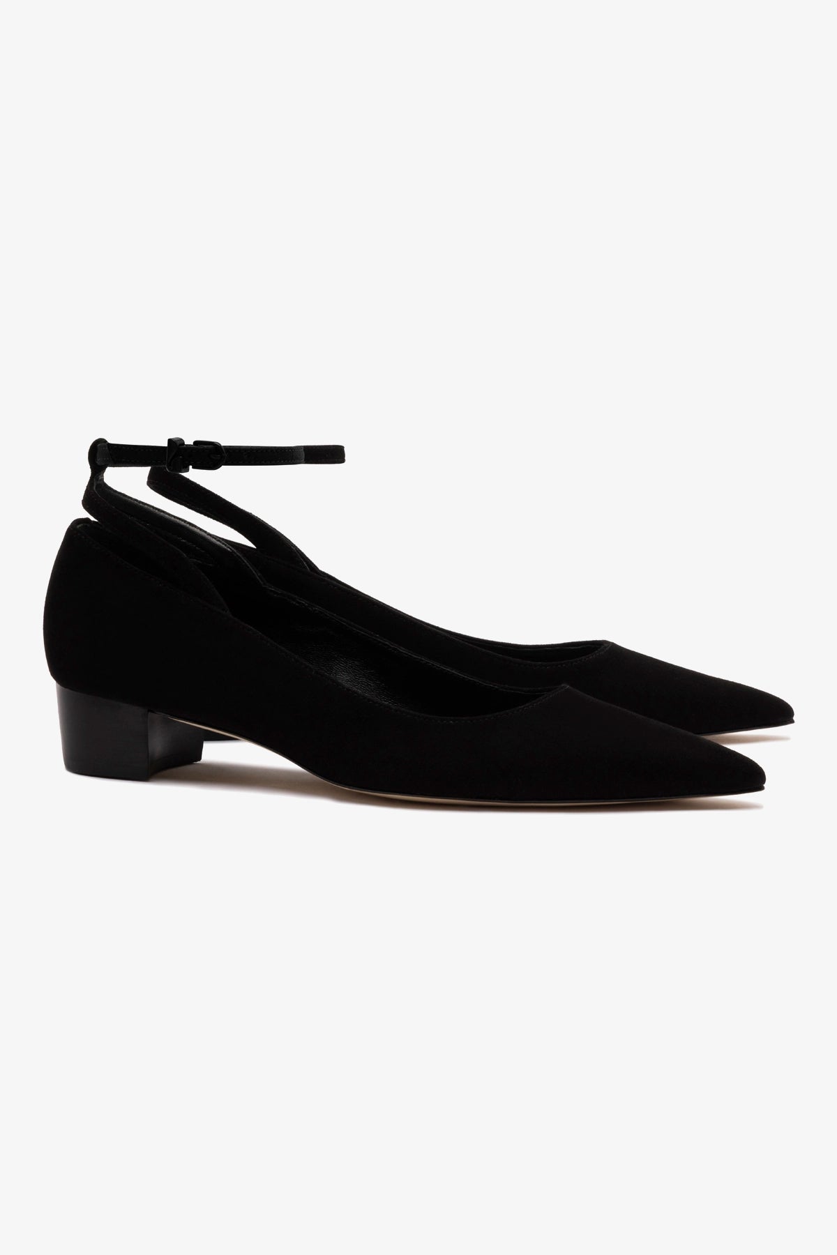 One of the most creative minds in fashion, Candy Pratts Price brings her innovative view to our creations. This low-heel suede pump is the perfect mix of comfort and timeless style. Featuring a sleek pointed toe and an ankle strap for a secure fit, it brings a subtle yet refined touch to any outfit.