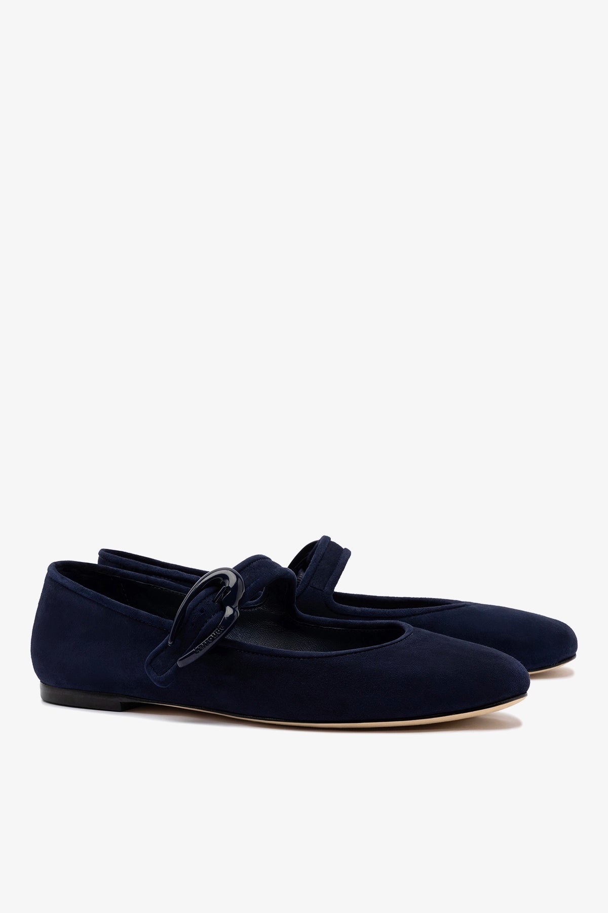 Our most comfortable flat yet, our new Verona mary-jane takes cues from a Shakespearean romance. In a soft supple suede that gently hugs the foot—and an adorable new heart buckle at the ankle strap—these navy beauties are the ones you'll grab for again and again.