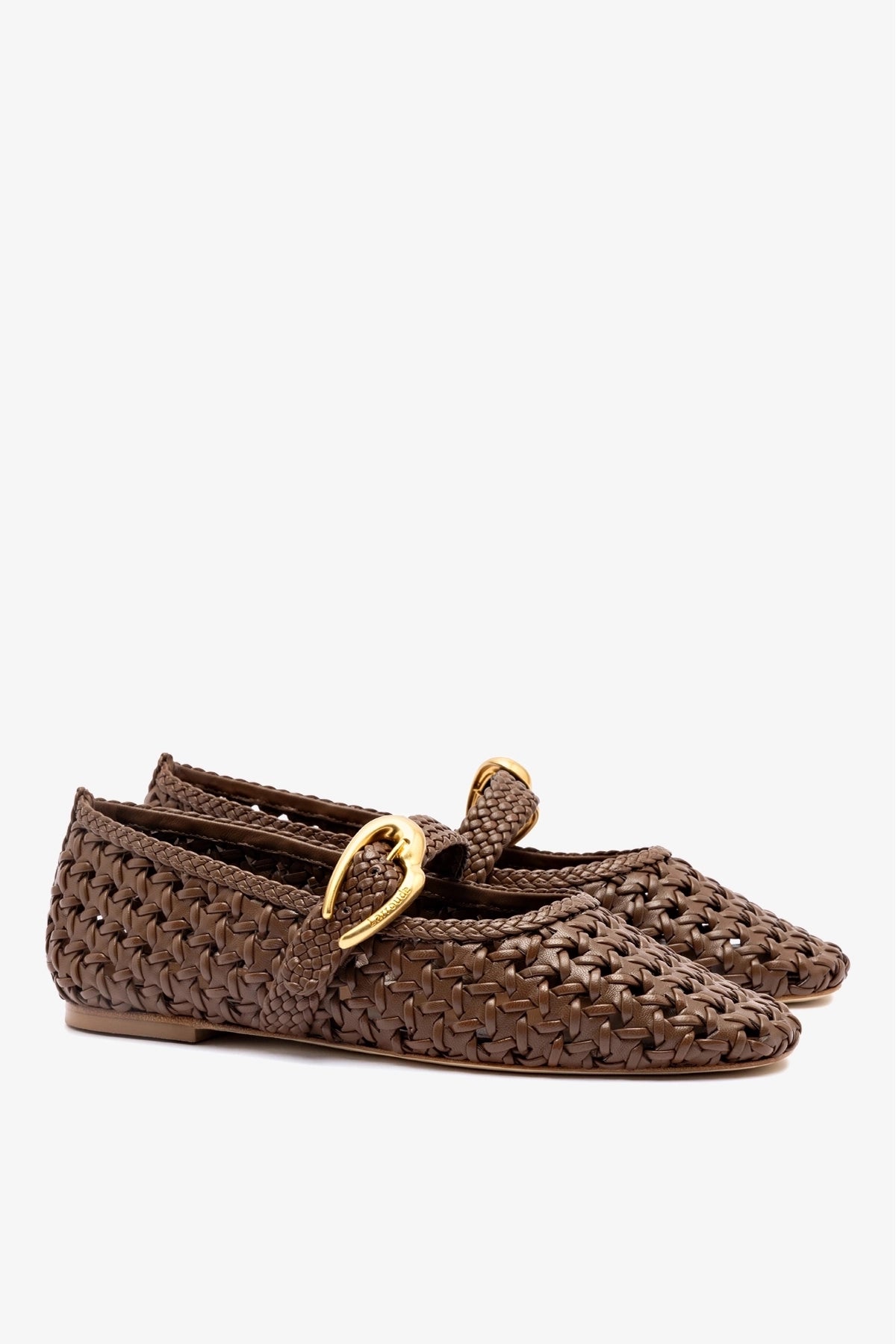 Verona Macrame Ballet Flat In Burnt Umber Leather