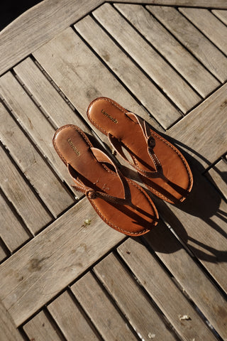 Mary Kate Flat Sandal In Caramel Leather