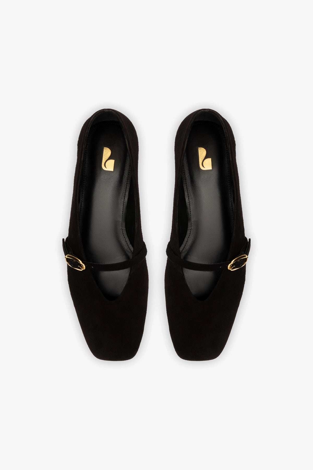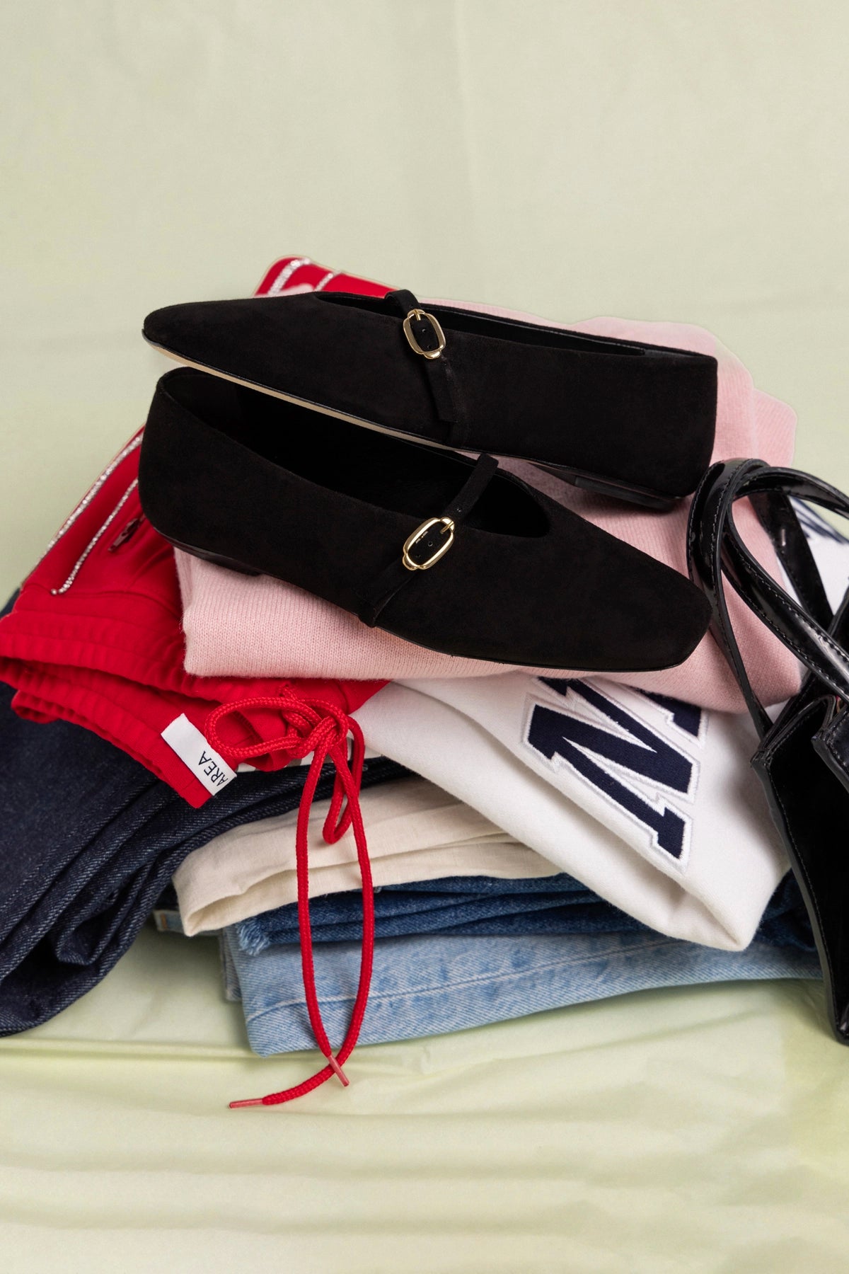Meet Misty—your new everyday ballet flat with a refined twist. Crafted in soft suede with a sleek almond toe and a delicate strap detail, it blends classic ballet inspiration with a modern attitude. Light, polished, and effortless, it’s the kind of shoe you reach for again and again.