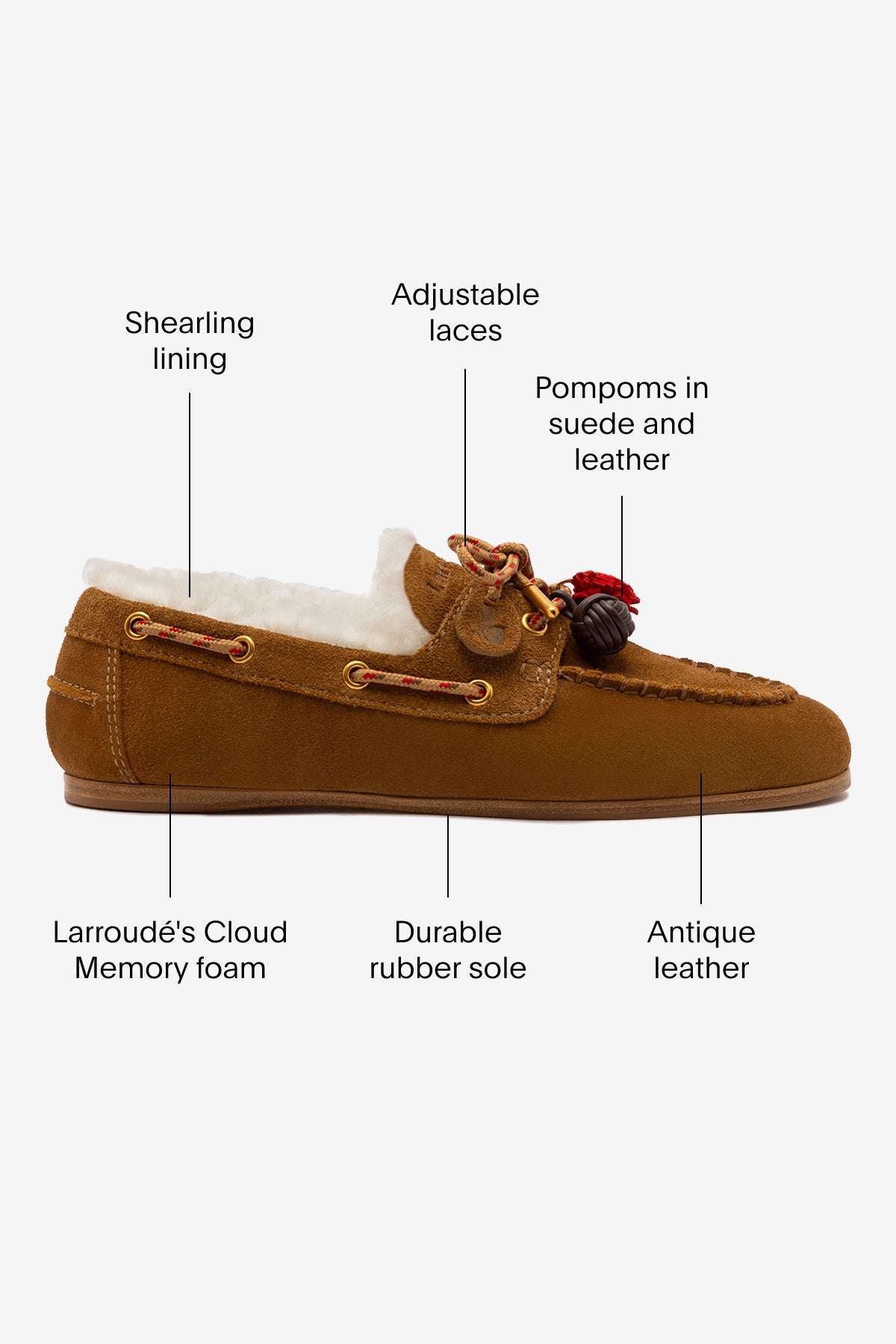 - Insole with Larroudé Cloud memory foam cushion and hot stamp logo