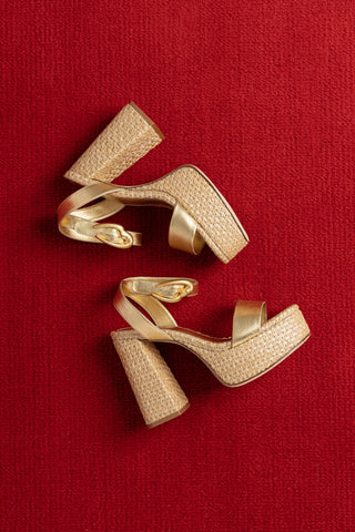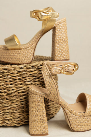 Equal parts party and chic, this leg-lengthening platform is ready for anything. With a comfortable platform base and adjustable ankle strap, High Summer's new Dolly Verona colorway comes in soft gold metallic leather set against a beige raffia base making this a failsafe option day or night.