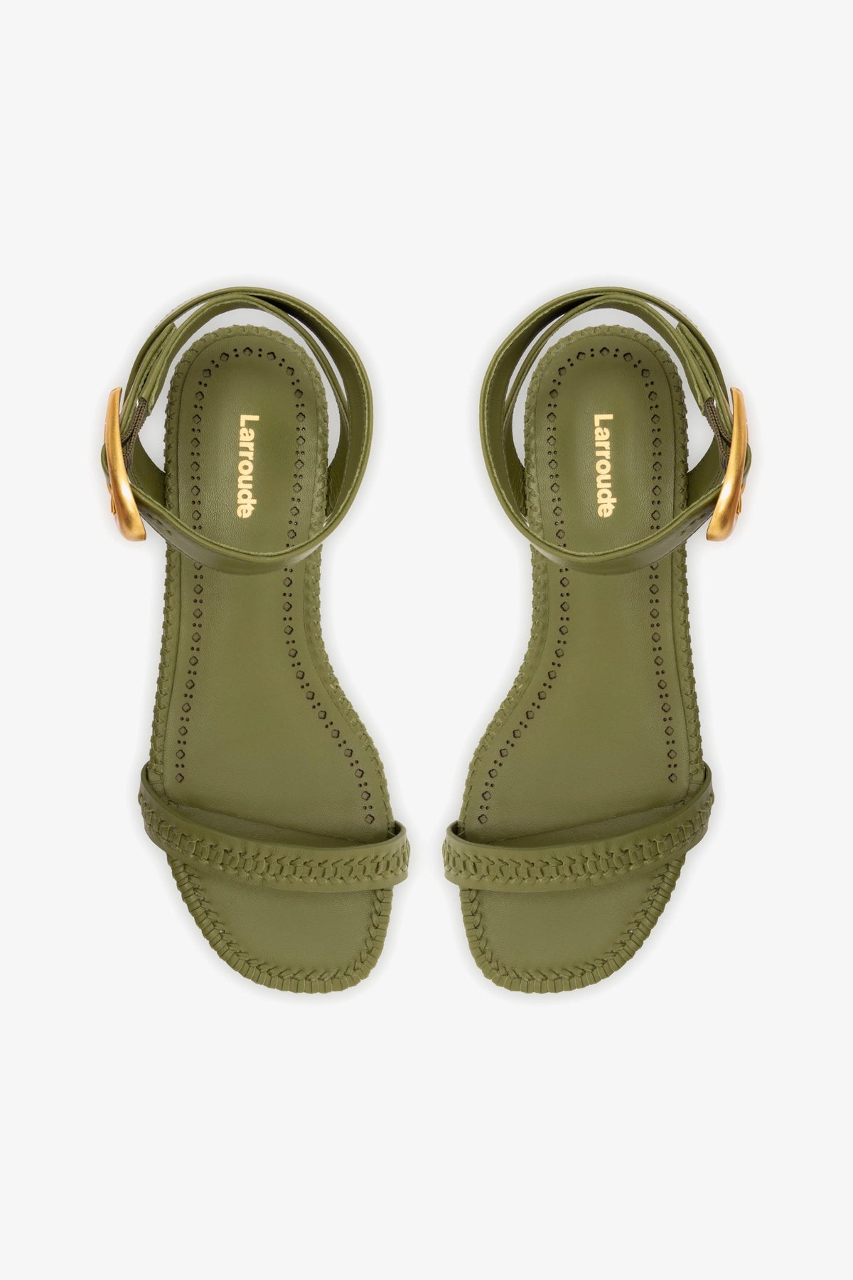The newest star of the Verona family, this versatile flat sandal features subtle design details that set them apart. Stitched leather in a deep seaweed green wraps around the shoe leaving a lasting impression.