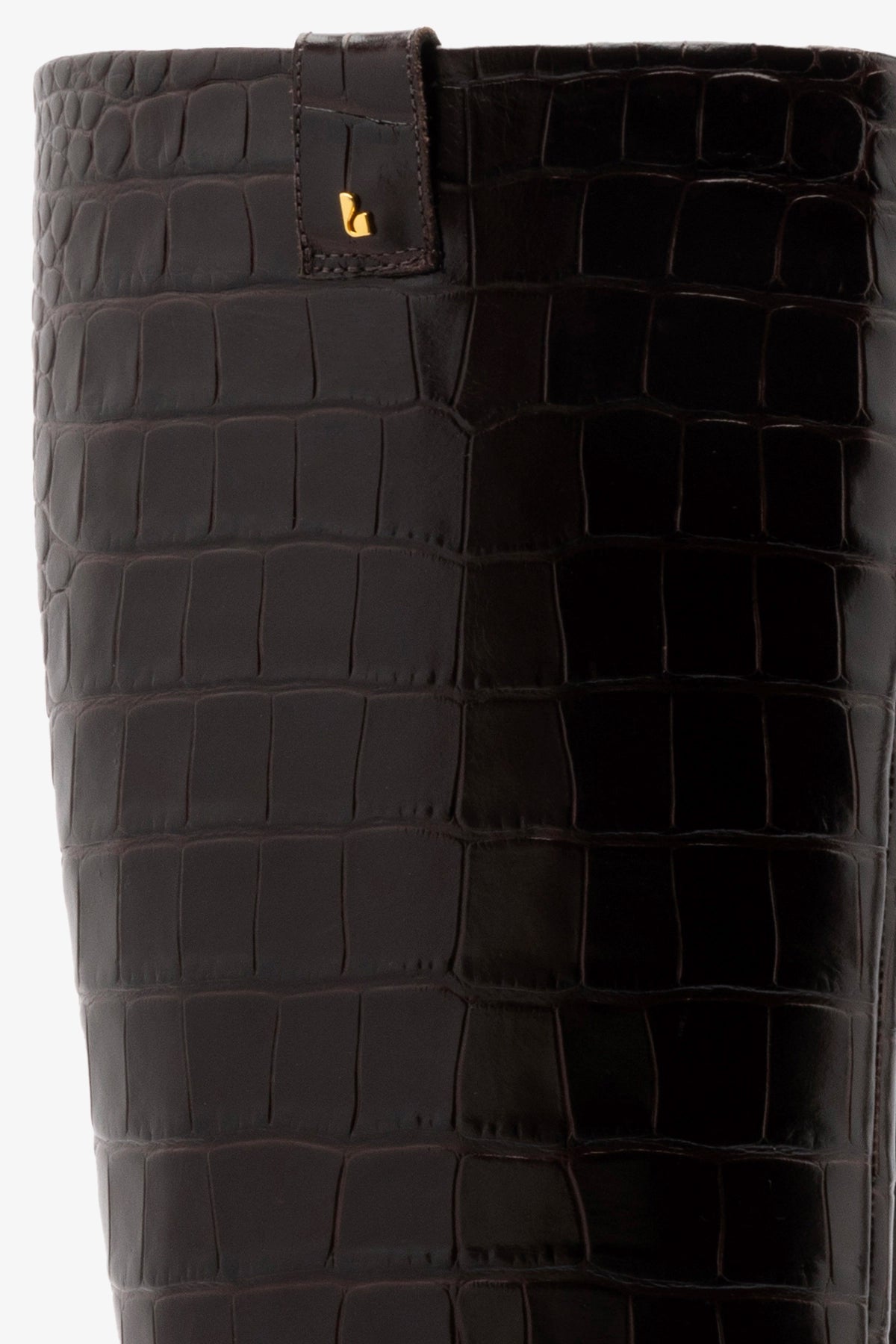 Sleek, refined, and endlessly versatile, this classic high boot is the ultimate wardrobe staple. Crafted in a dark croco-effect leather with a flattering, elongating silhouette, it has a timeless shape with just the right amount of edge—the kind of boot you’ll reach for season after season.
