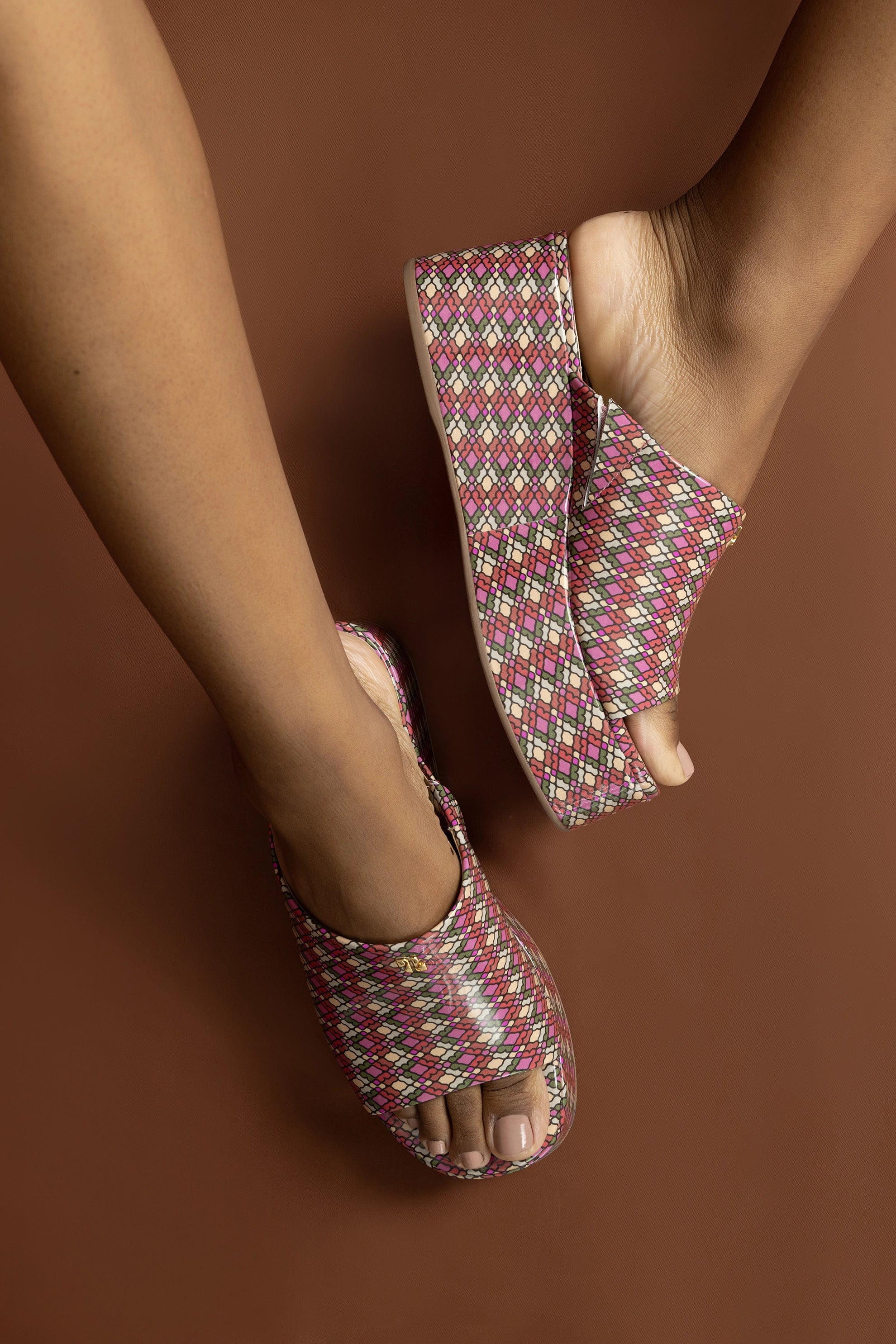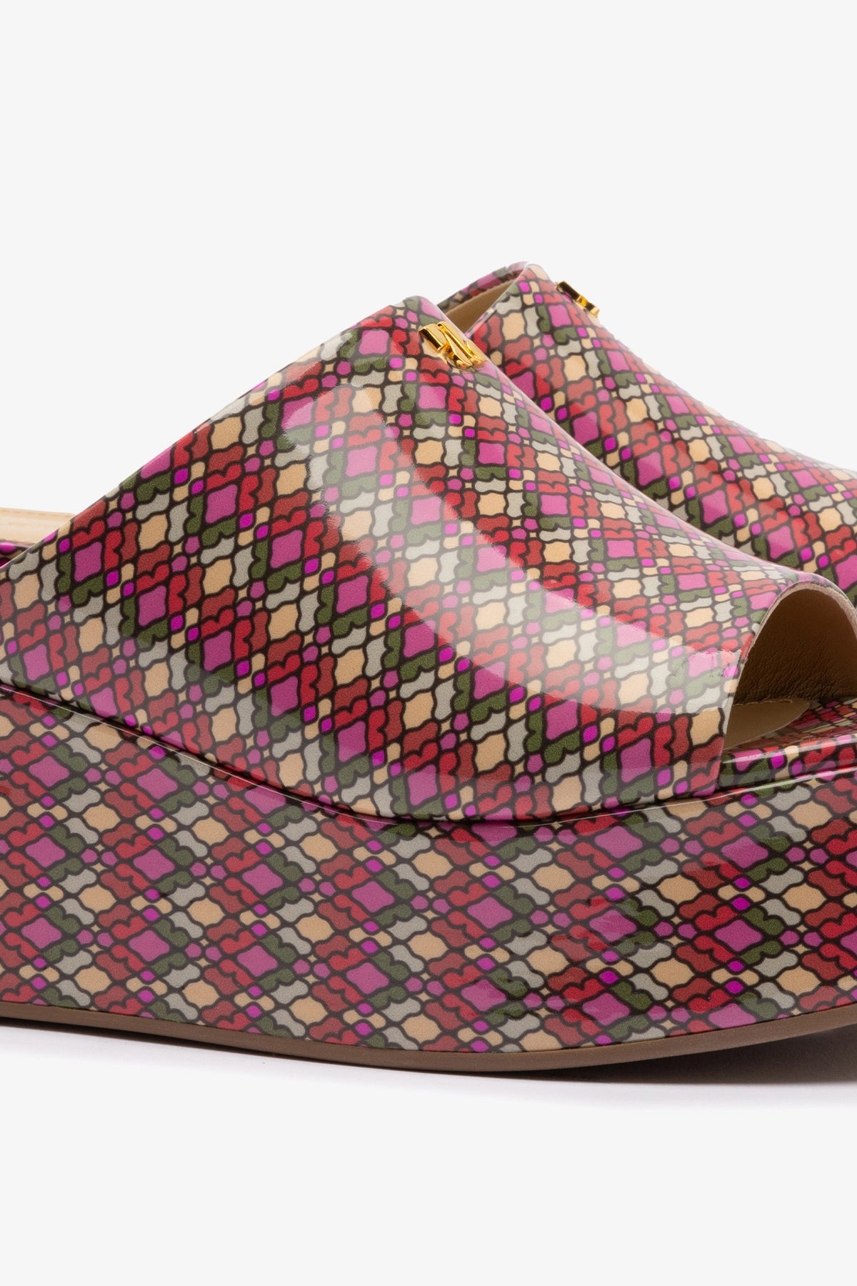 Charli Mule In Pink Vichy Patent Leather