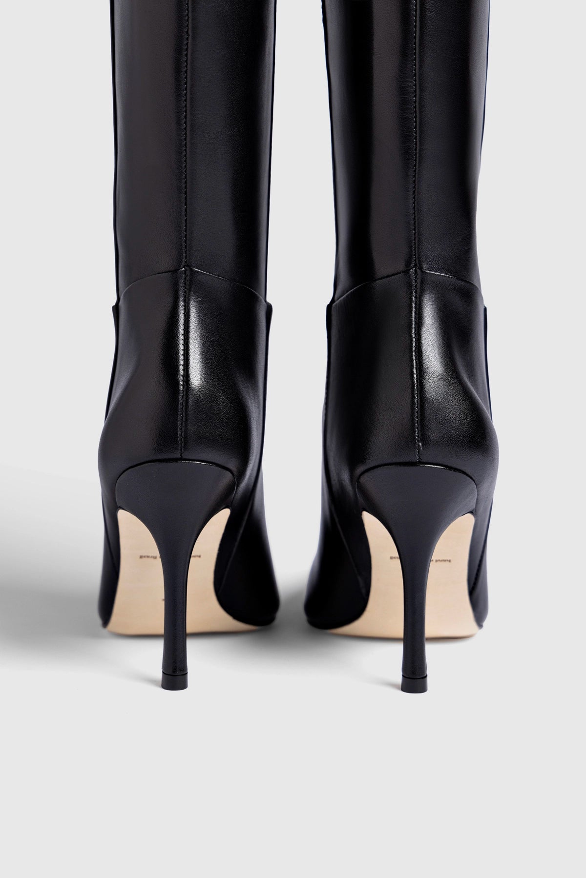 Named after the legendary fashion icon Carine Roitfield, this boot is the definition of a timeless piece. Crafted from impeccable black leather, its tall silhouette elongates the leg with a powerful elegance, along with the pointed toe and stiletto heel.