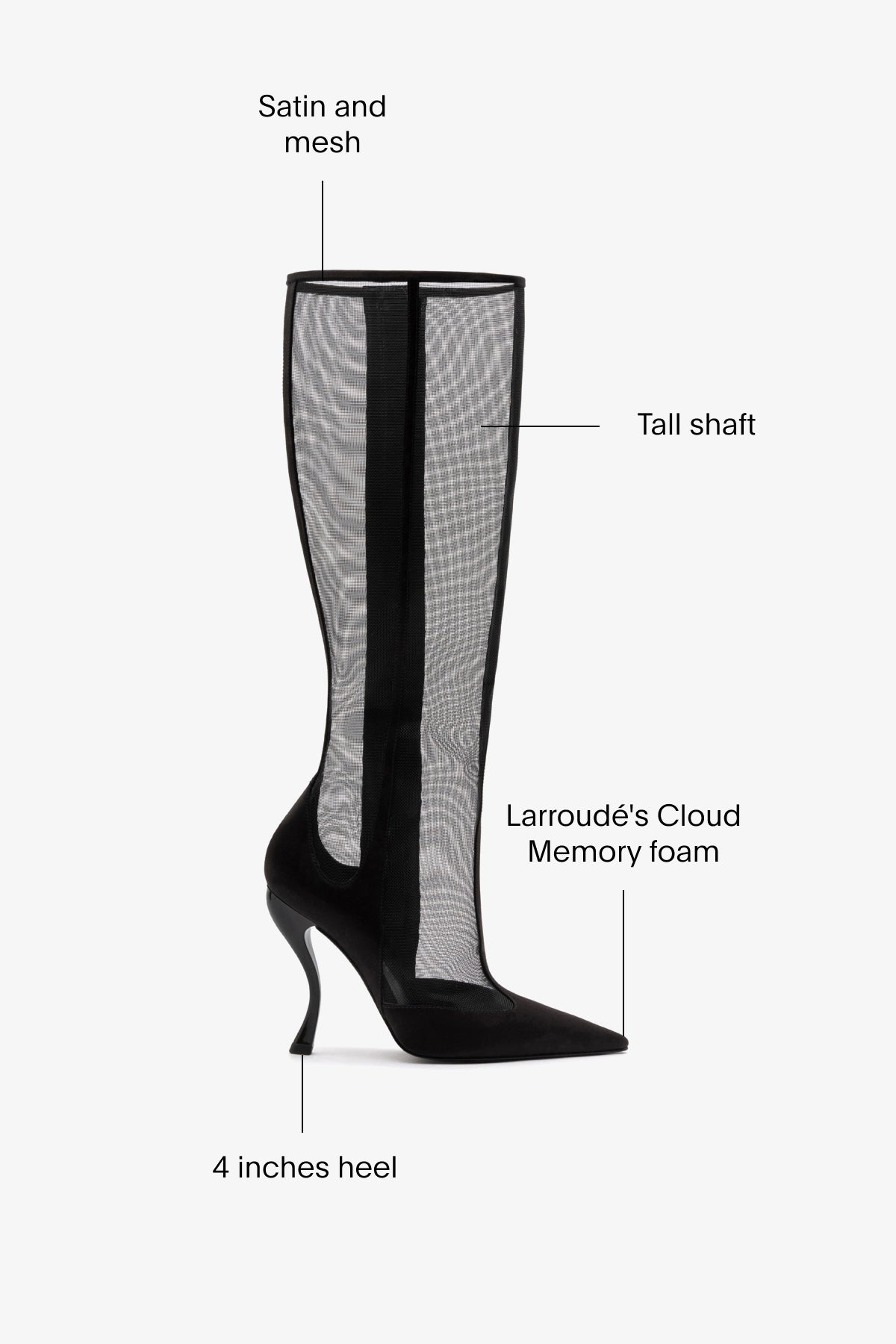 Larroudé by Nicolò B. Zuzu Mesh Boot In Black Satin