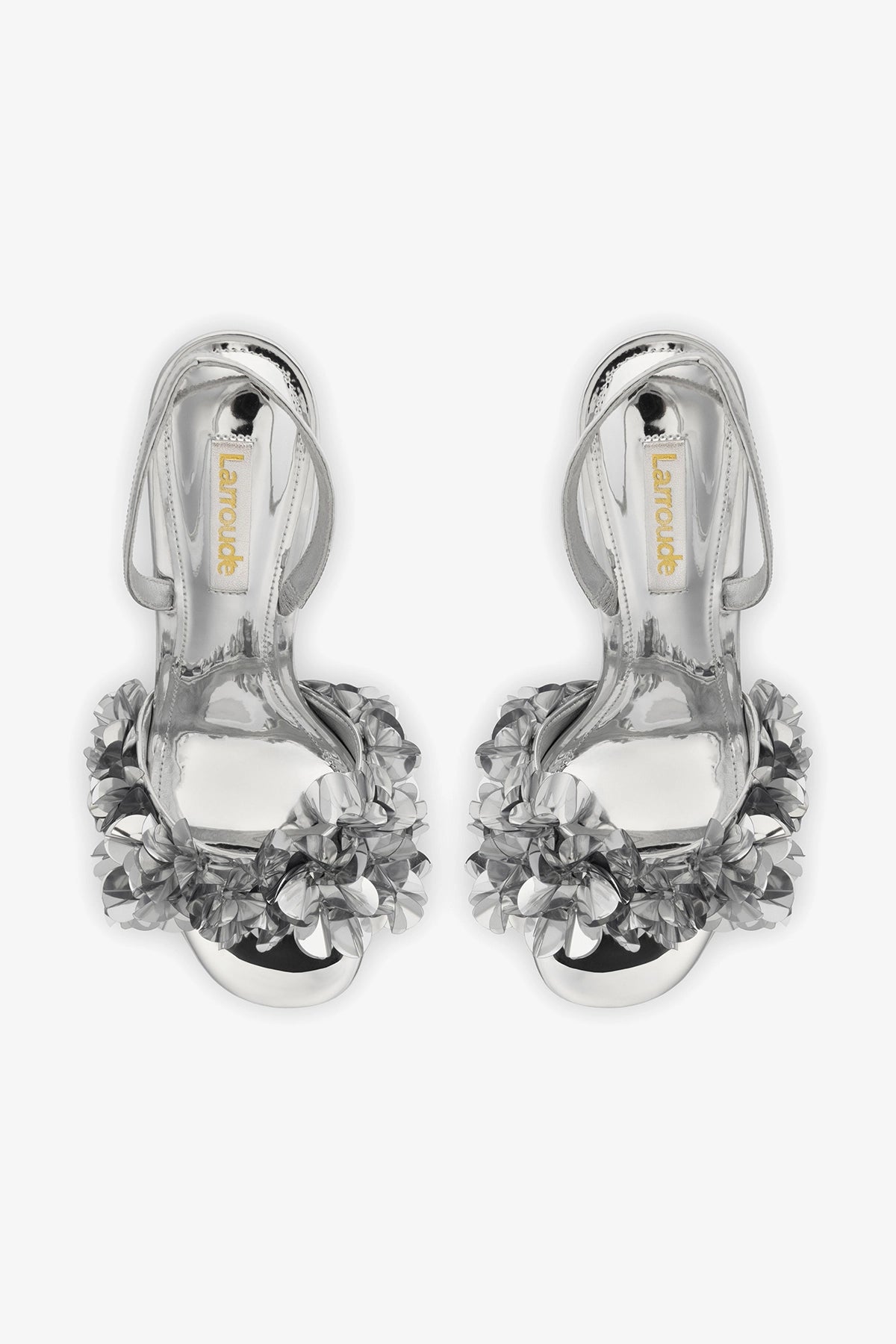 The Morgan is pure celebration: reimagined in specchio silver with its commanding stiletto heel, it defines vibrant luxury. The voluminous sequin appliqués are the statement that transforms this sandal into the essential piece for shining brightly.