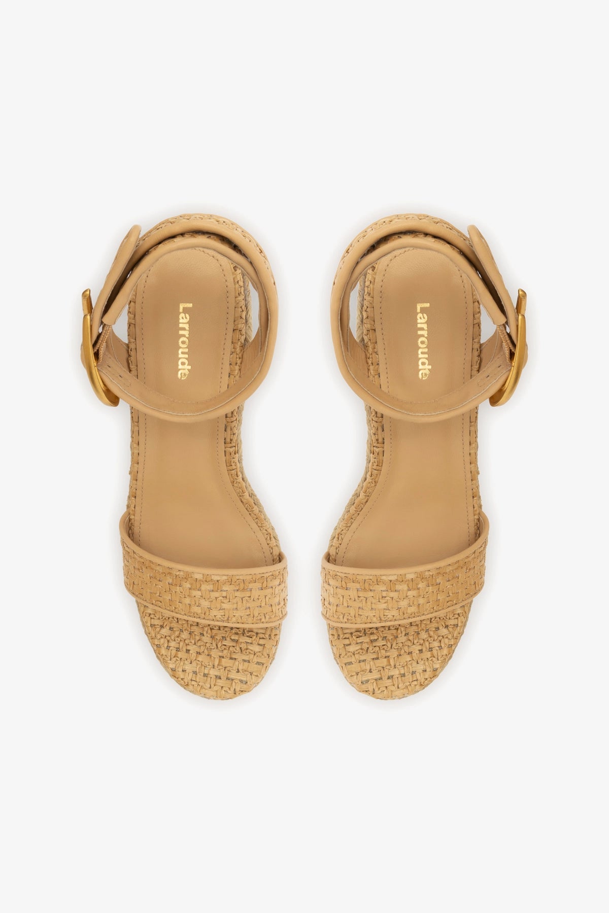 Verona Hi Wedge In Beige Leather and Natural Raffia